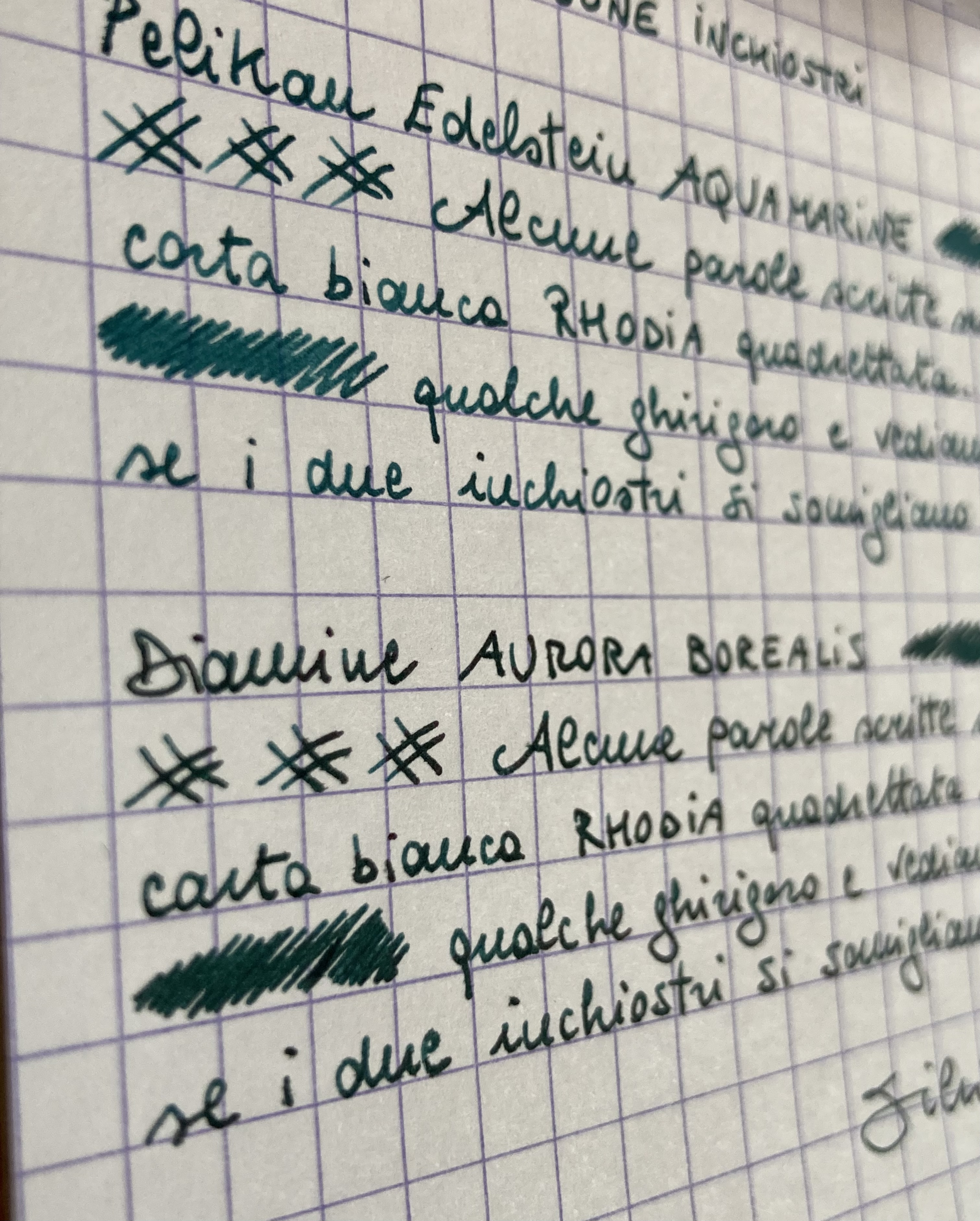 Stasera vorrei fare un focus su differenza tra Diamine Aurora borealis e Pelikan Edelstein Aquamarine