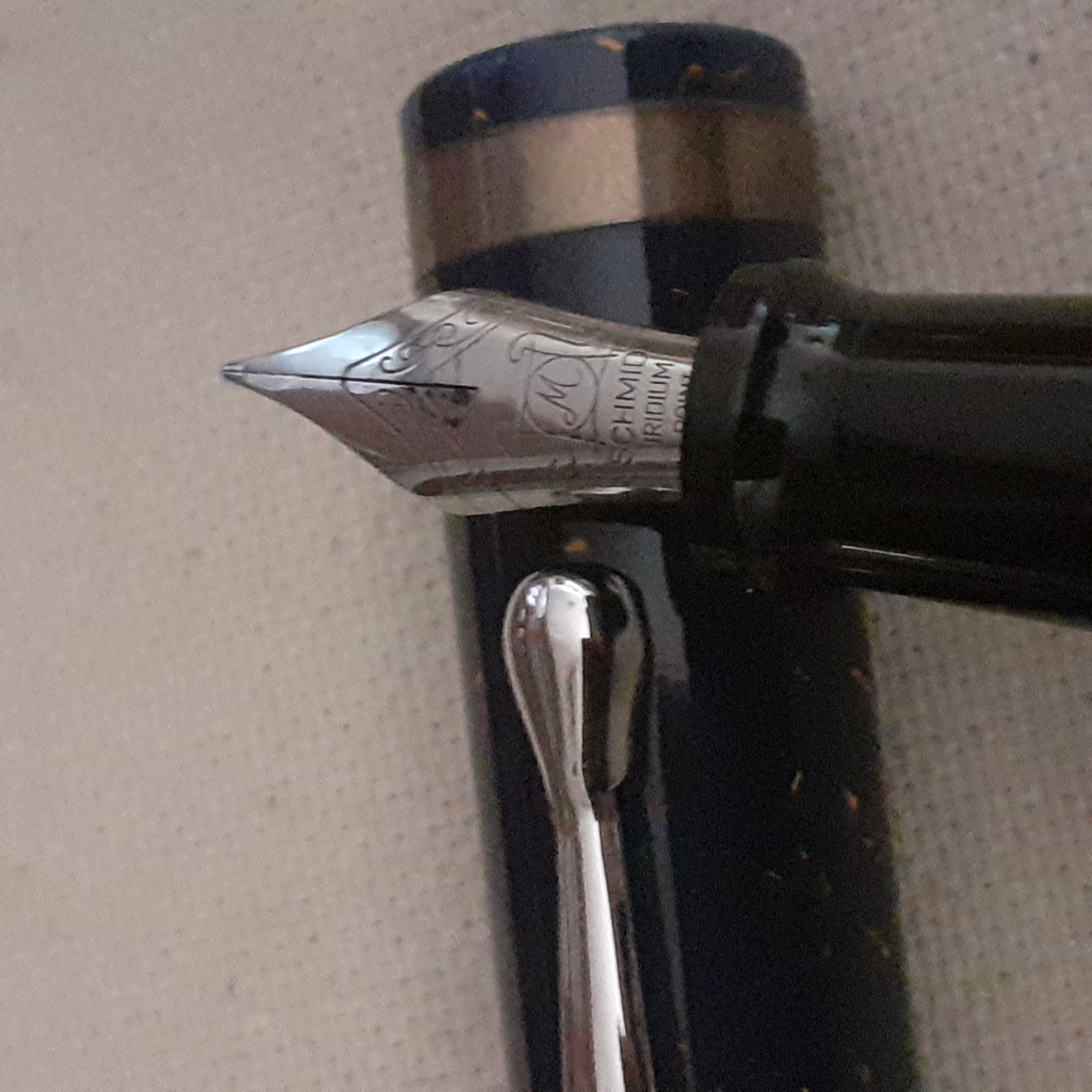 Per quanto riguarda il pennino, sono una noia. Un bel pennino in "M" è sufficiente per me. Tuttavia, con l'Atlantica blu, ho sostituito il pennino M di Schmidt con un pennino B di Schmidt.