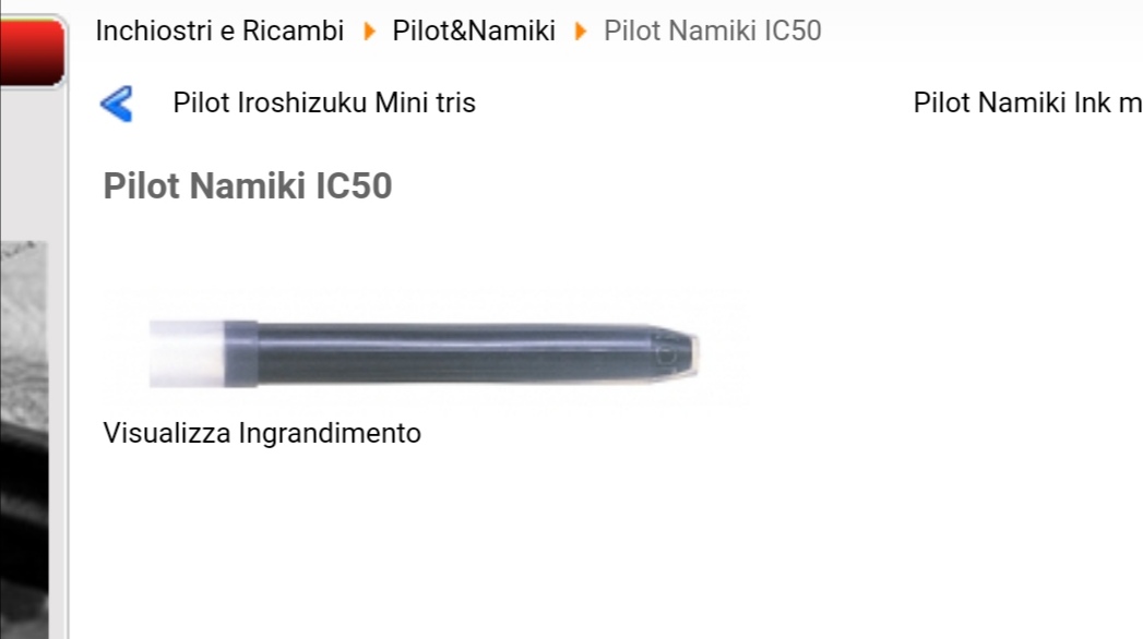 Scusami non ho capito,13 euri costa cosa?Lamy ha scritto: ↑martedì 4 maggio 2021, 20:35 Sì, l'inchiostro incluso è il Pilot Namiki Black ed è un buon inchiostro. Le cartucce IC-50 sono compatibili con tutte le stilografiche Pilot, tranne quelle scolastiche che hanno l'attacco standard. Secondo il mio parere costano troppo, conviene acquistare il CON-70 e un calamaio da 70 ml, il cui costo si aggira sui 13€.