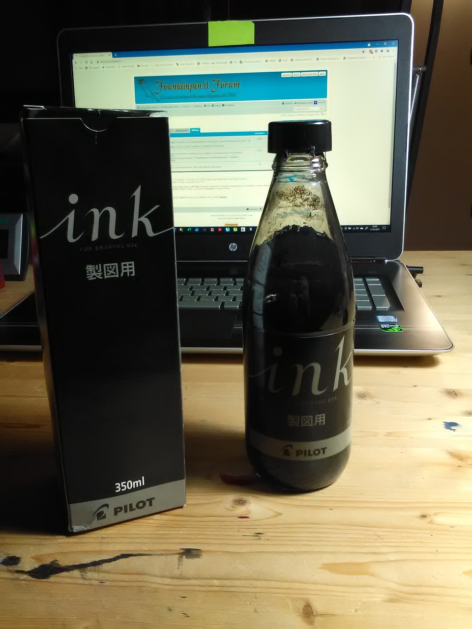 Anni fa lo vendevano in quel di Firenze, ora non più. Mi ero dimenticato di averlo, la bottiglia è sporca perché l'ho agitata, mi sa che devo aggiungere un po' di acqua distillata per via dell'evaporazione. Mi ricordo che se la penna non veniva utilizzata giornalmente qualche problemino lo creava. Lo descrivevano come un inchiostro pigmentato per disegno utilizzato dagli artisti manga.