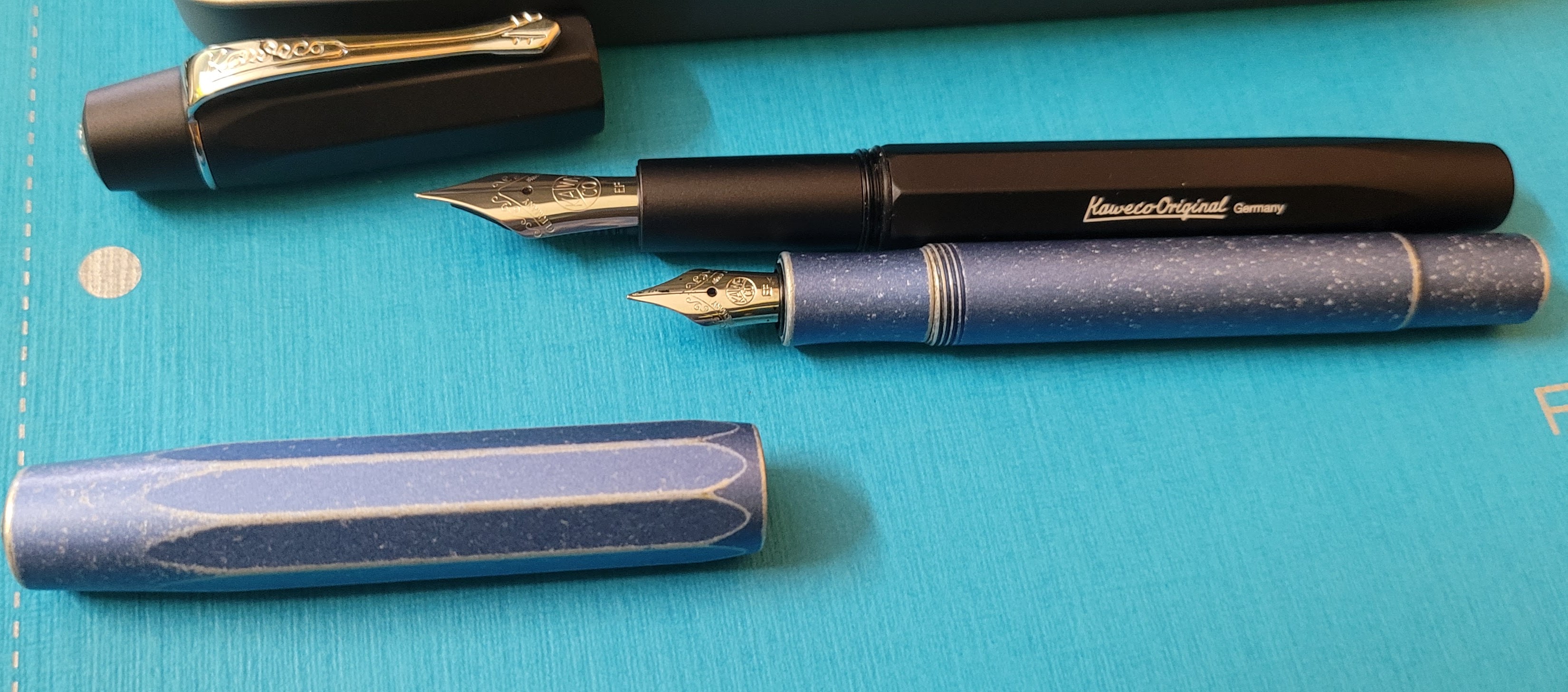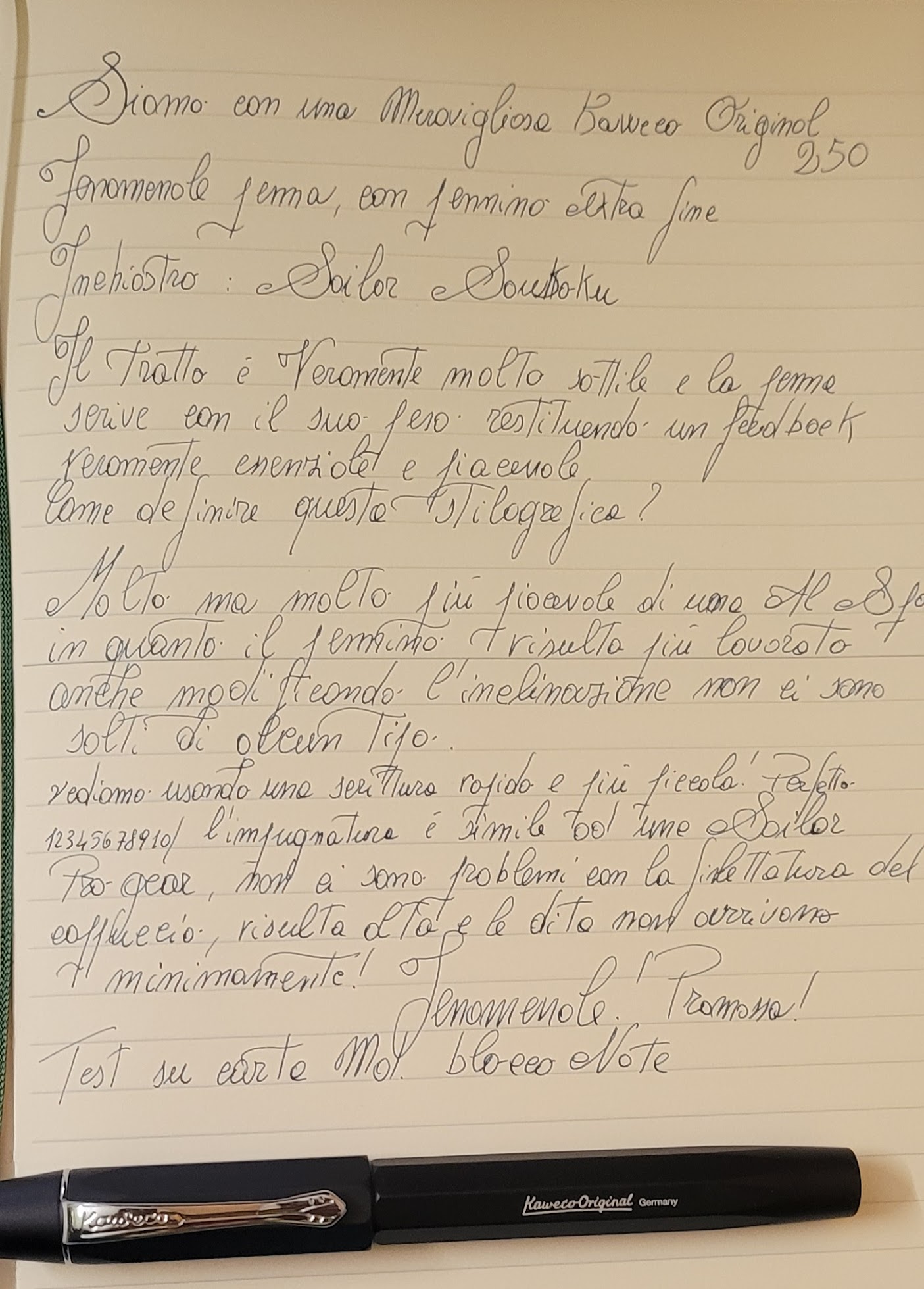 Oggi provando la mia collezione di stilografiche Kaweco ammiravo quanto siano veramente fantastici i pennini delle mie Kaweko AL Sport. Rimiravo quanto sia veramente gradevole il feedback restituito e il controllo sulla calligrafia. Avendo solo due Kaweco AL Sport nella mia collezione, una con pennino in acciaio standard e una con pennino premium sempre in acciaio (detto sincero a me piace molto di più il pennino non premium), avevo deciso di prenderne almeno un altra. Parlo della AL Sport che a mio avviso ha un pennino diverso dalla versione Sport. Mettendo a confronto i pennini, sia in termini di scrittura che di spessore dell'acciaio nel pennino sembra esserci grande differenza, il pennino della Sport sembra più fino di spessore e la sua scrittura non è ben calibrata e piacevole, rispetto alla AL Sport. Ma forse sono solo mie impressioni.