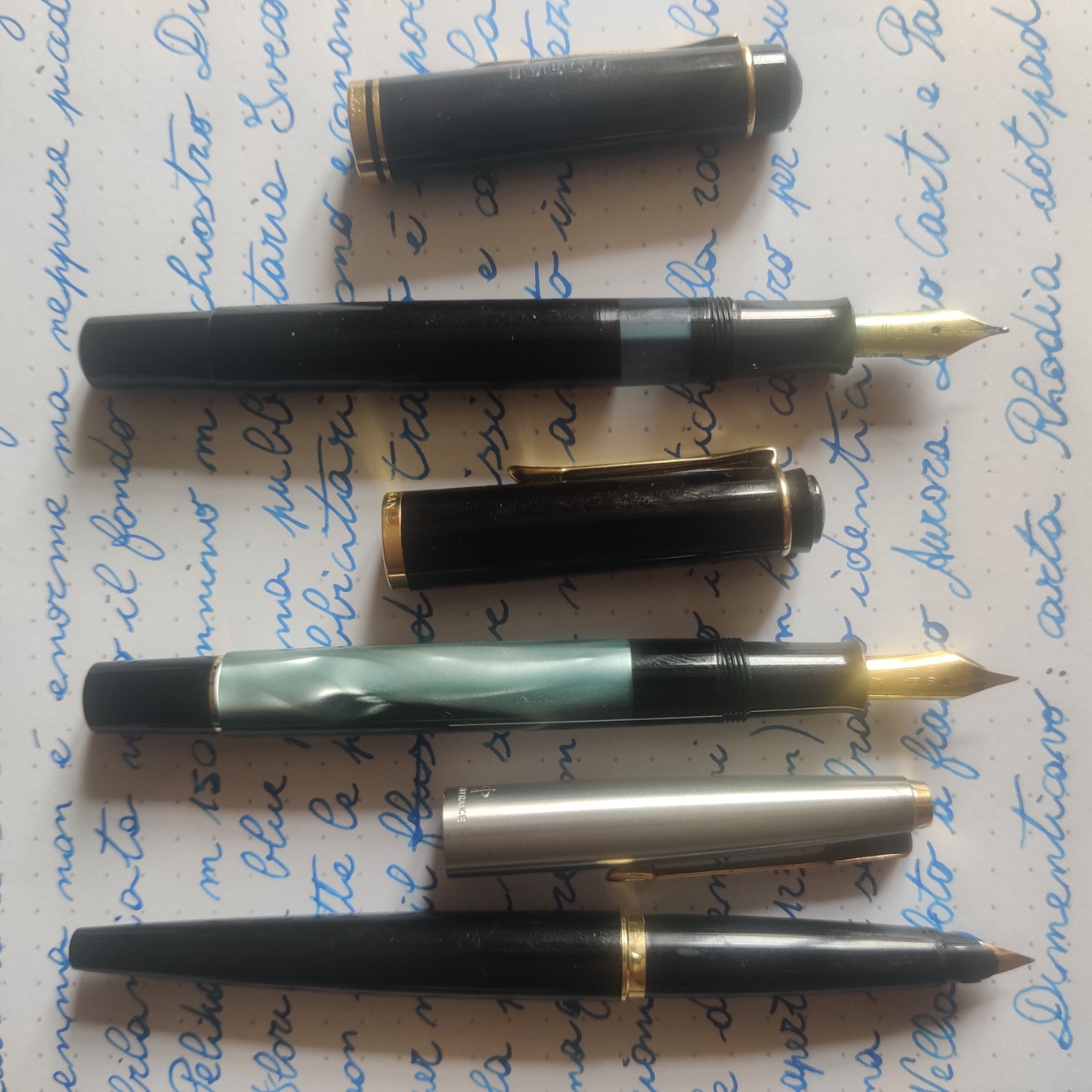 OK affino il tiro, per me F è più che sufficiente, considerato che è vero, gli EF Pelikan in acciaio a volte grattano un poco (se poi uno ci sa fare con il micromesh anche quello è un problema secondario). Con un inchiostro secco comunque il flusso si doma e anche l'F non deborda, il Pelikan Blue Black va a nozze con la M200.