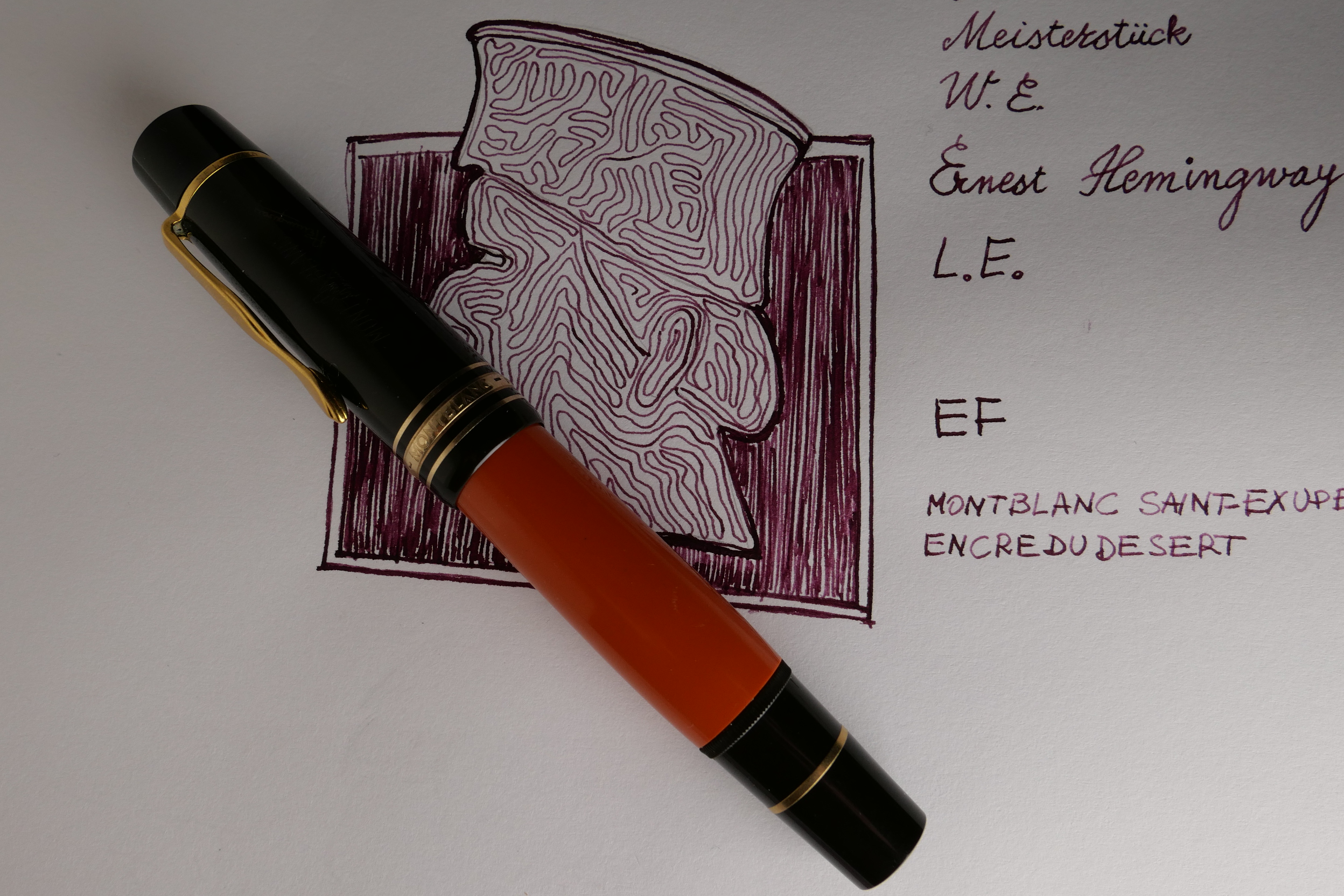 Sono emozionato ... oggi scrivo con una MB Hemingway. Il pennino è un EF. Il tratto mi è congeniale, e poi ho un'altra 149 degli anni '60 con pennino EF, ora potrò effettuare un confronto.