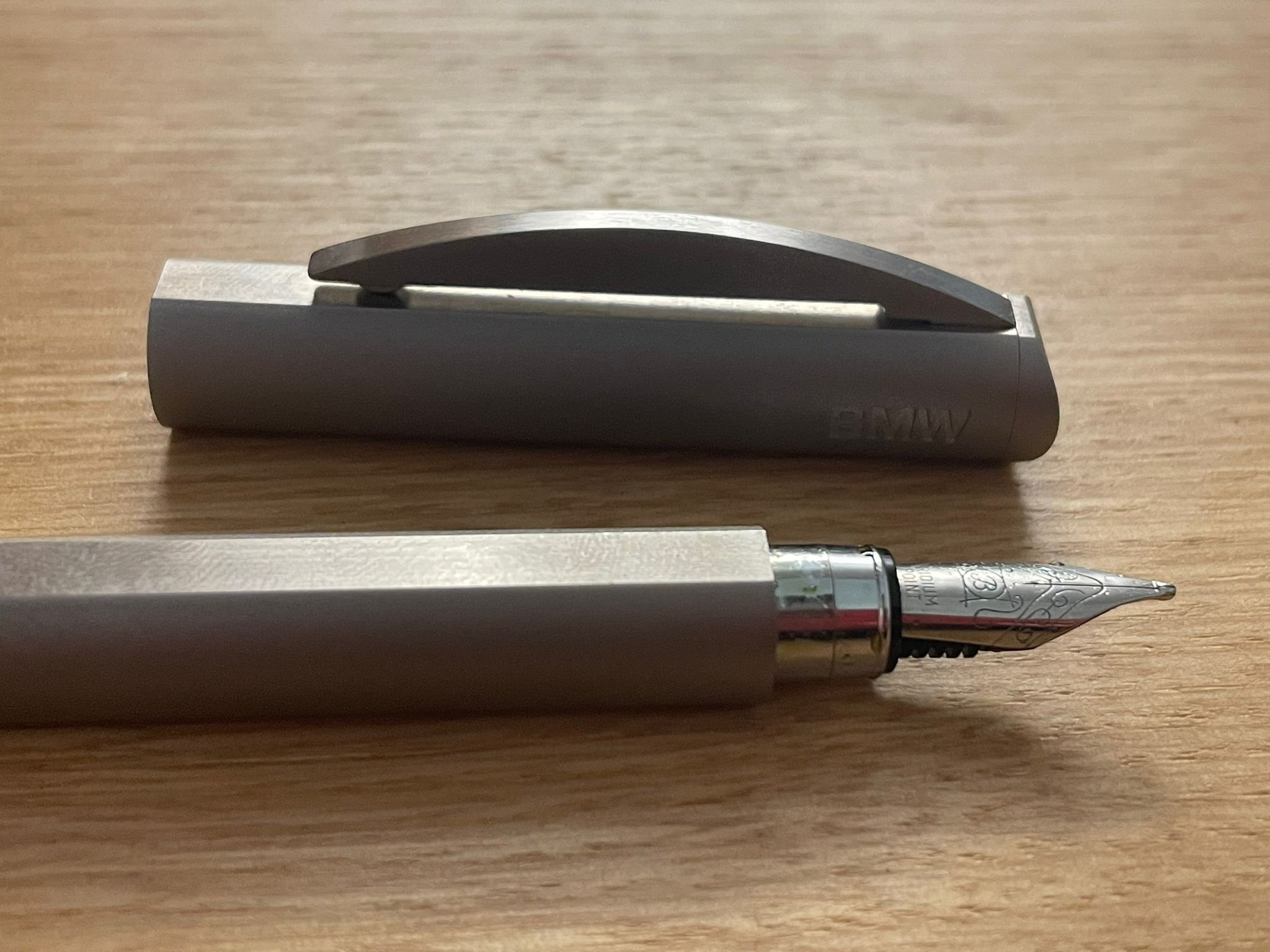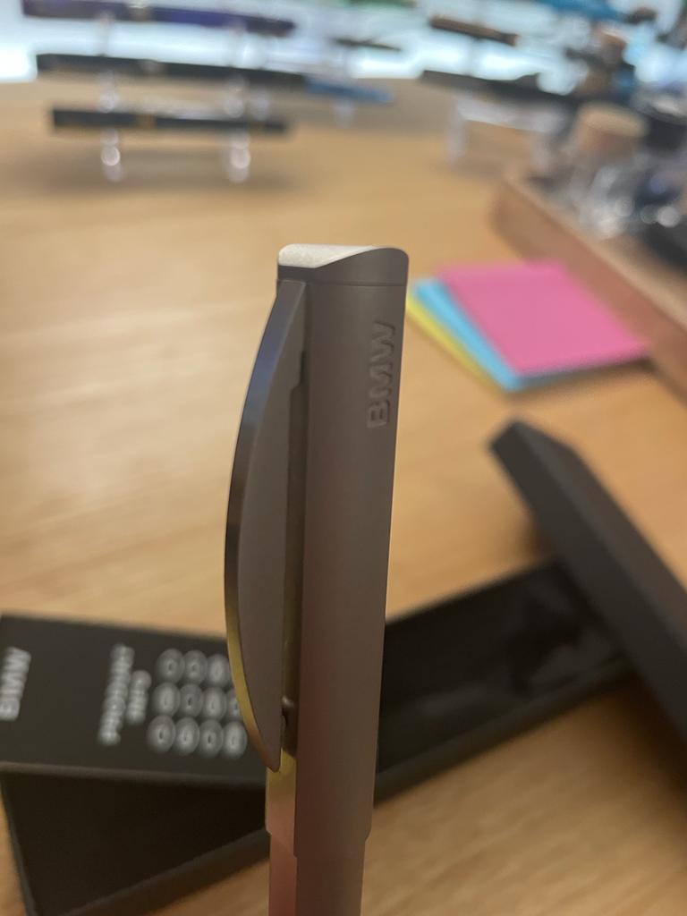 L'unico marchio o logo presente è il logo BMW sul cappuccio inciso. La clip ha una molla dall'inerzia molto piacevole e non è particolarmente dura, anzi, direi perfetta. Anche questa segue la finitura della penna, quindi sul lato frontale è lucida.