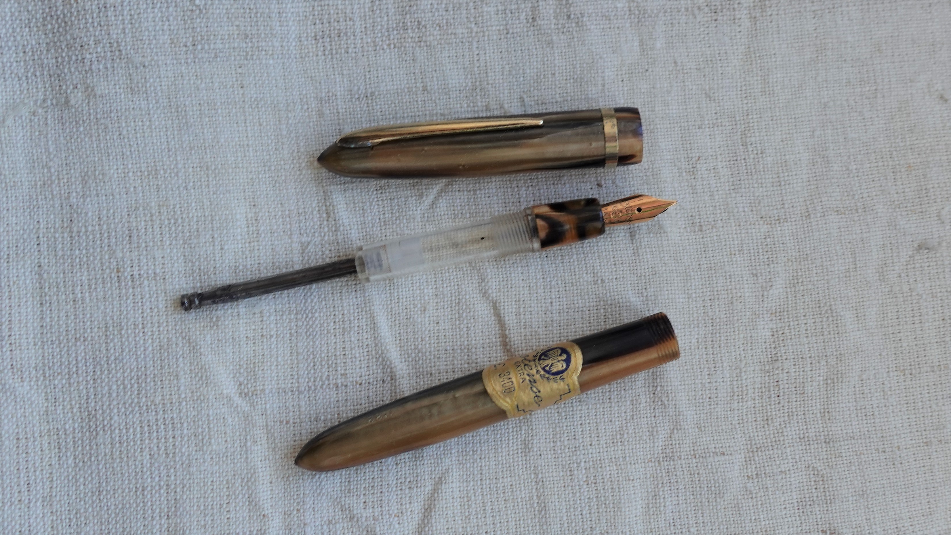 La stilografica riporta ancora la fascetta con il prezzo Lire 3.400.