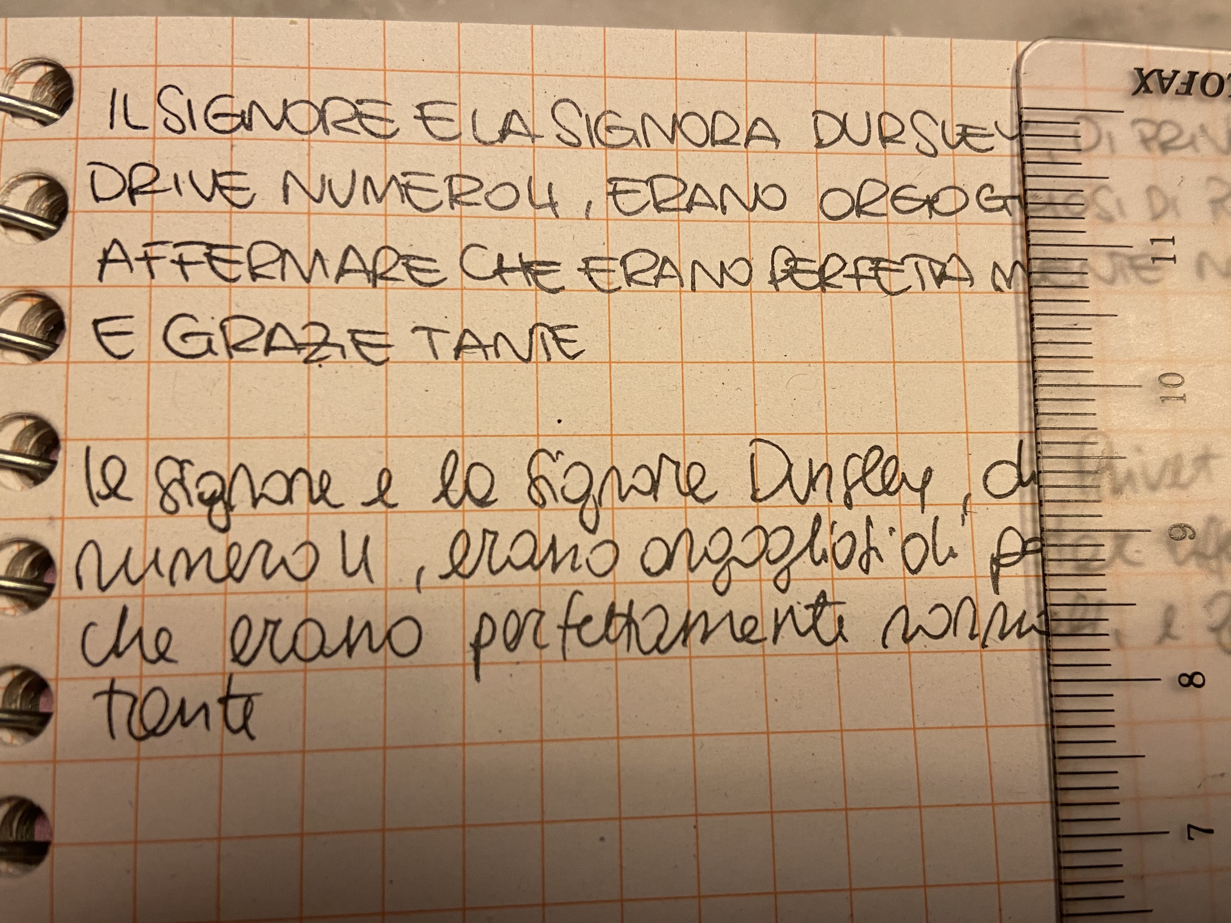 Qui con taccuino in carta riciclata, 5 mm, l’incipit in stampatello e corsivo è come scrivo in modo veloce per prendere appunti, su questo tipo di carta c’è ovviamente più feedback ma non è certo la classica carta da quaderno (che, strano ma vero, non ho in casa)6579D37A-9337-4DBA-8449-7FF6D9CD215F.jpeg