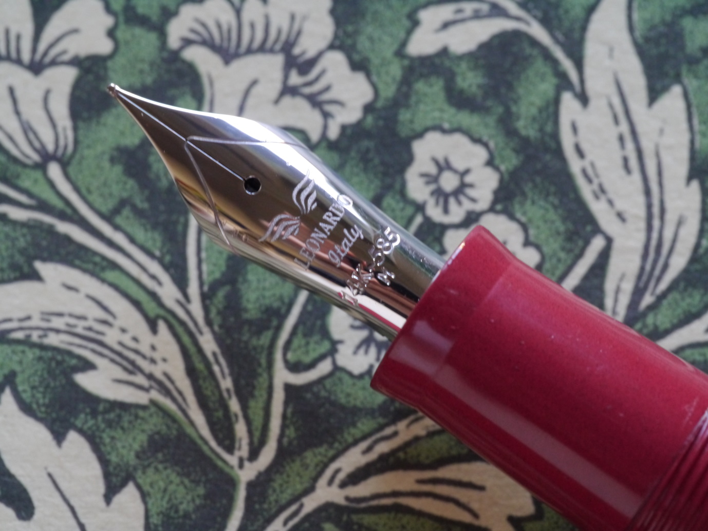 La Leonardo che sto usando maggiormente al momento è la Art Decò che ha pennino F 14k con un buon accenno di molleggio e alimentatore in ebanite.