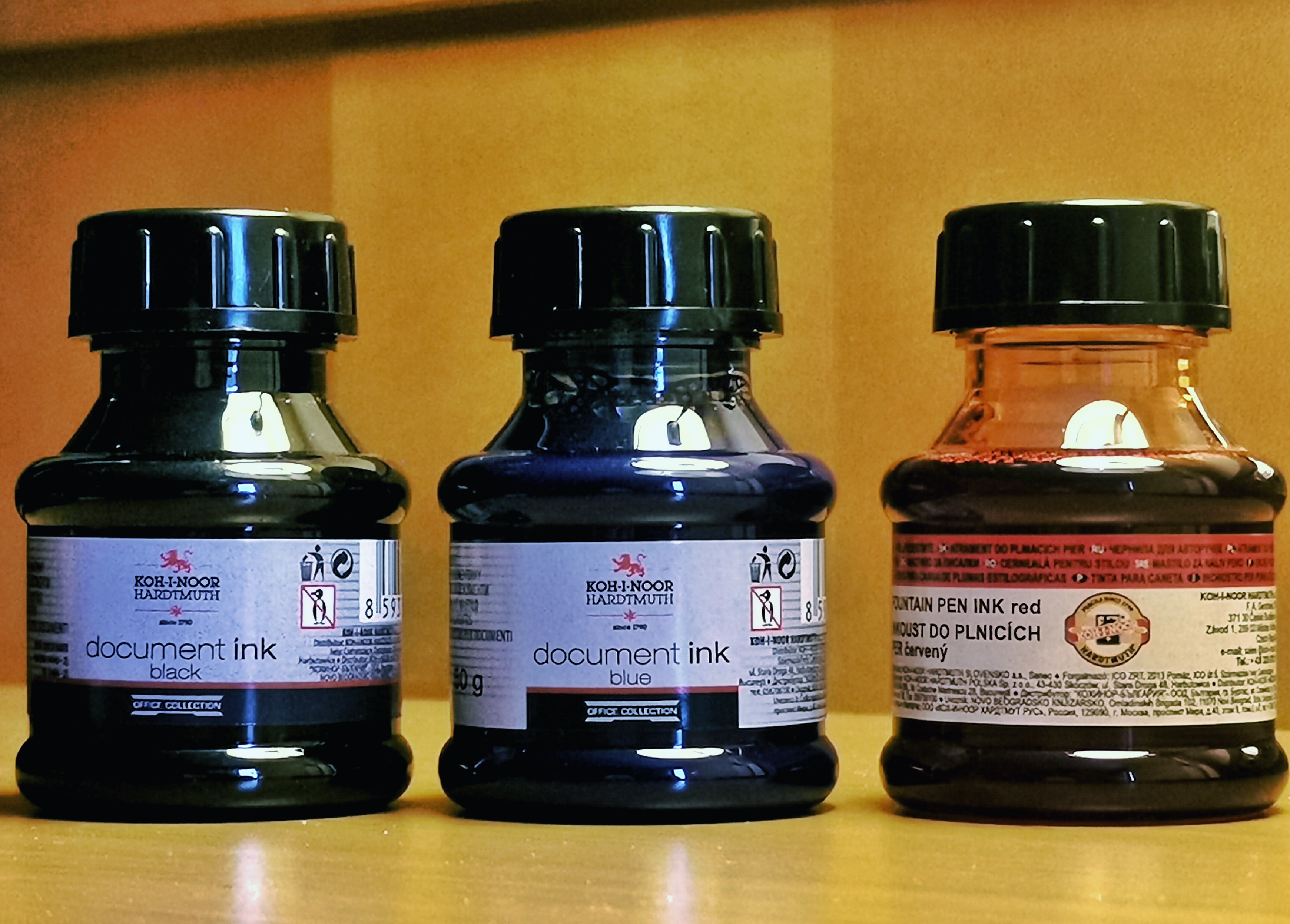 3 calamai da 50 ml. 2 document (nero e blu) 1 rosso scuola.