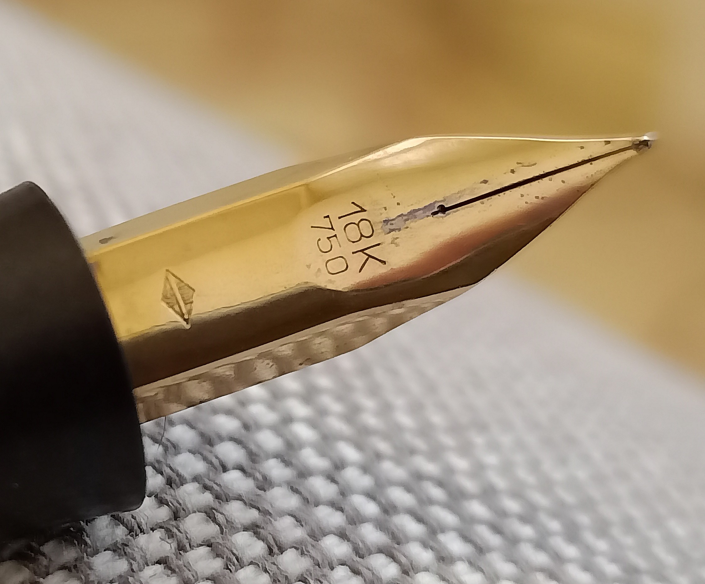 Come scrive Simone, credo si tratti di un punzone, di seguito foto del pennino di una Waterman CF con scritta 18K e due punzoni, uno a rombo identico al tuo.