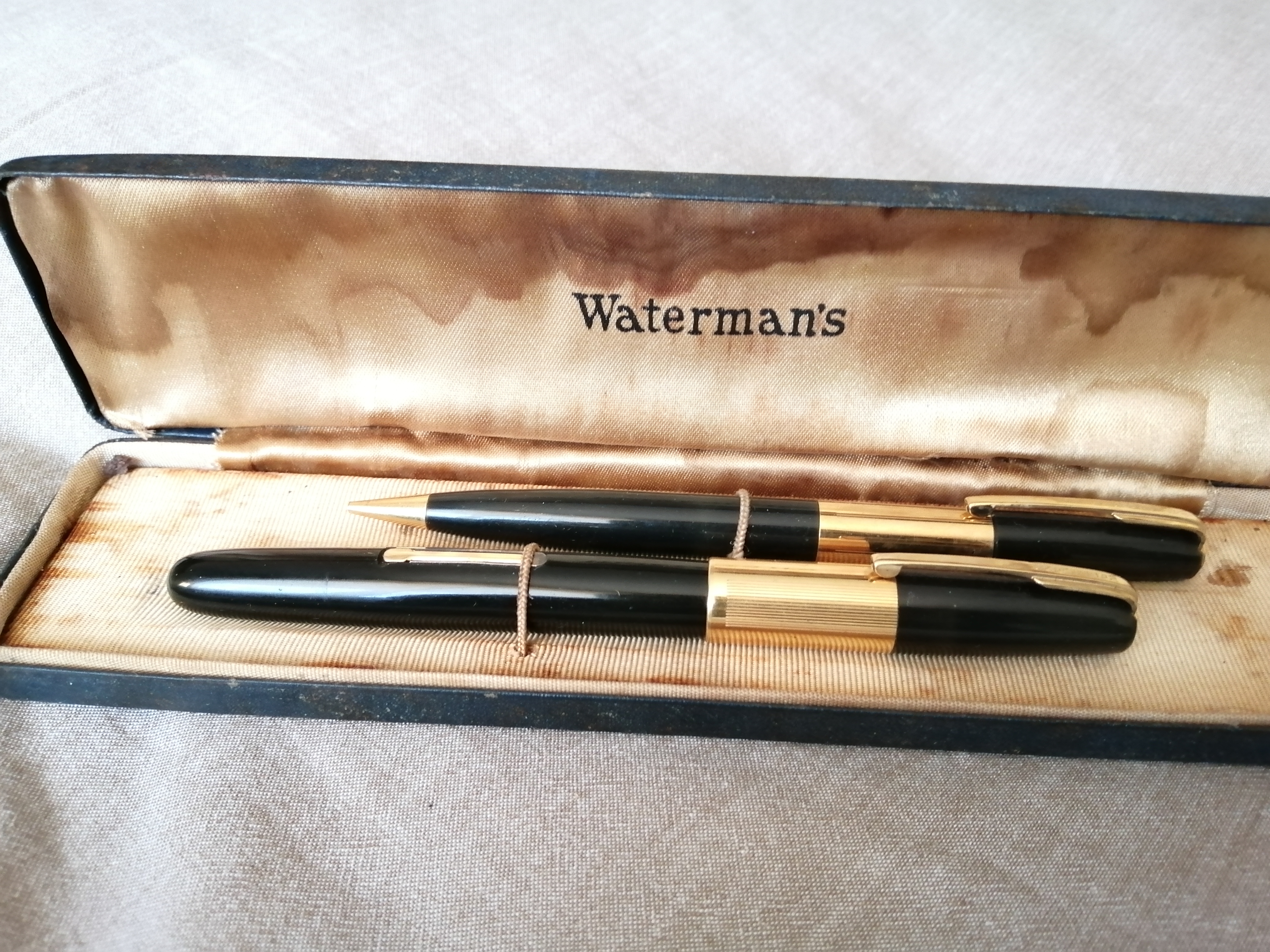 Buongiorno a tutti, ho appena portato a casa questo set Waterman's. Non conosco molto i modelli di questo marchio, ma mi pareva di averla identificata come una Ideal. Quello che non mi torna molto sono sezione e pennino.