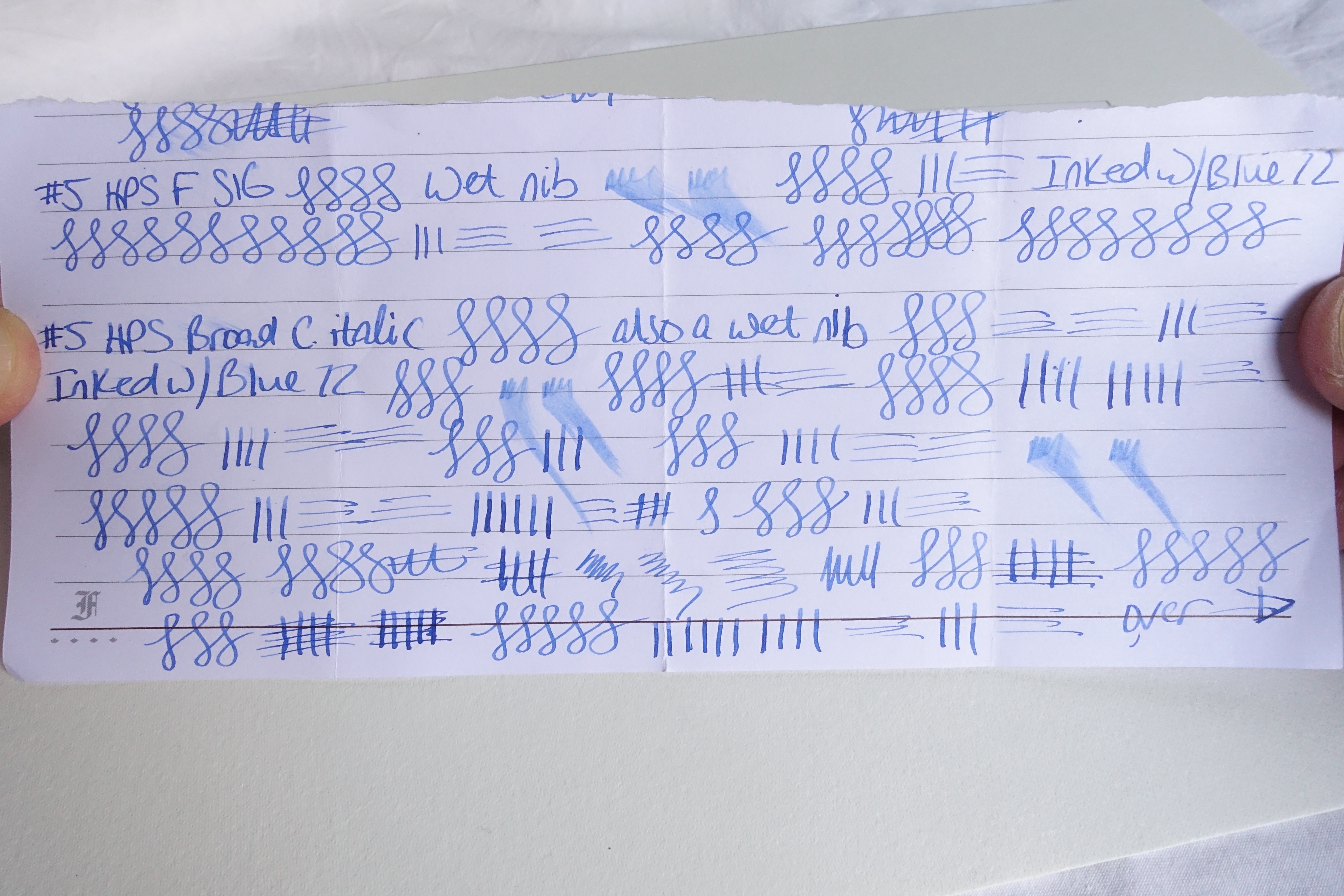 Sono entrambi pennini a cui mi sono dovuto abituare non essendo, almeno per me, di uso istintivo, ma una volta affinato il metodo di scrittura risultano estremamente piacevoli e donano caratteristiche espressive nel tratto davvero notevoli, soprattutto il B.C.I. . Su entrambi il nib master è intervenuto nella riduzione e conformazione della punta in lega.