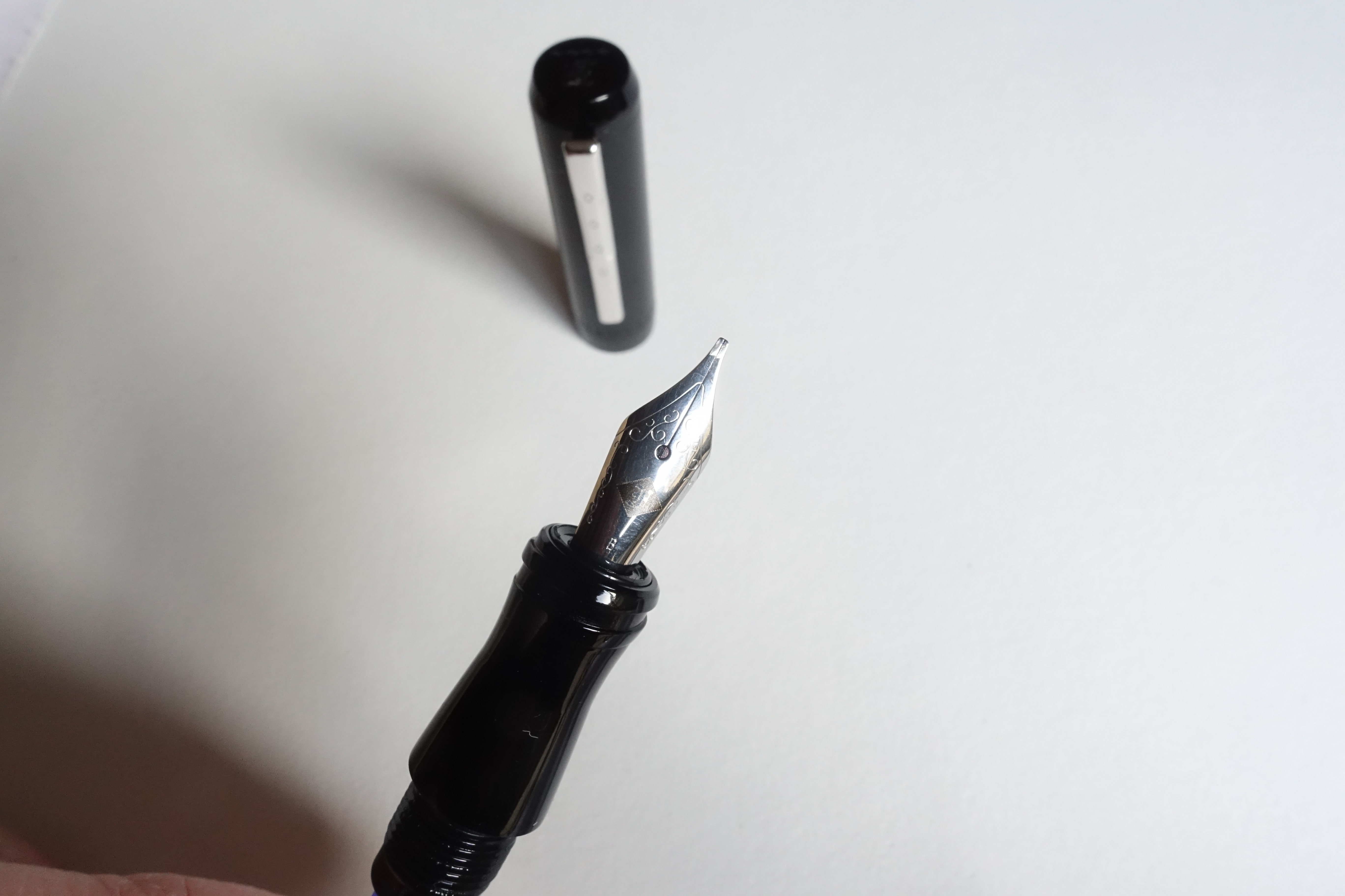 Ed ora veniamo ai pennini. Si tratta di pennini Jowo # 5 e sulle 19 diverse soluzioni (questo altro punto di forza della F-C) io ho scelto due in acciaio (il gruppo scrivente è a vite facilmente intercambiabile); un B.C.I. Nagahara (Yukio, ex Sailor, figlio del mitico maestro Nobuyoshi Nagahara) e un pennino S.I.G. su base “F” elaborato in house dalla nib master Audrey Matteson. Solo per il S.I.G. avevo richiesto di avere un flusso abbastanza bagnato e così hanno provveduto.