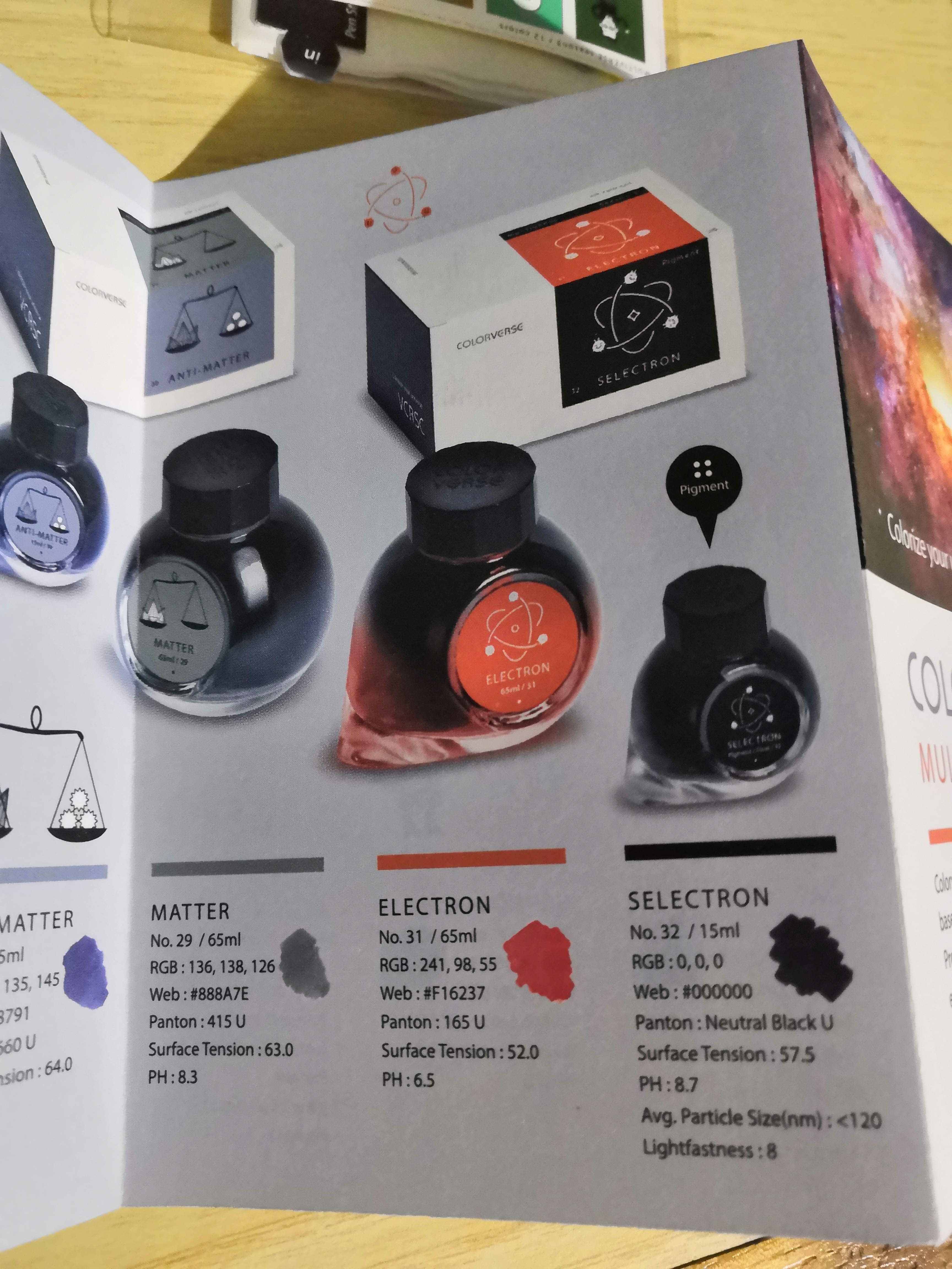 Nei Colorverse della serie Multiverse, oltre agli adesivi c'è un interessante libretto in cui c'è scritto per ogni inchiostro i valori RGB, il pantone e anche il ph. Lo trovo interessante fonte di curiosità soddisfatte