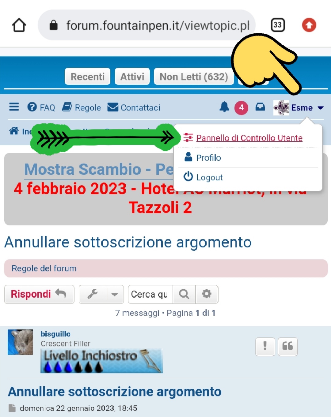Si fa con la chiavetta, non è molto intuitiva vista che quando si apre il relativo menù appare scritto sottoscrivi argomento spuntato, ma quando un argomento è sottoscritto dovrebbe diventare annulla sottoscrizione argomento non spuntato, cosa che consente di tornare indietro.