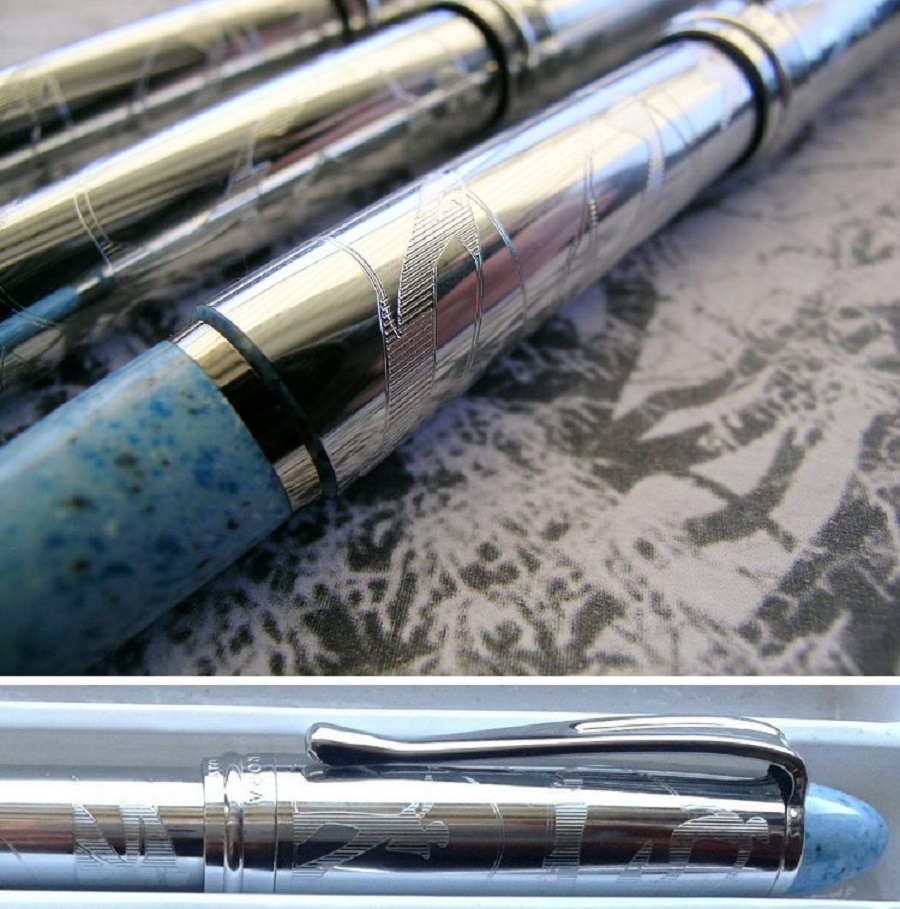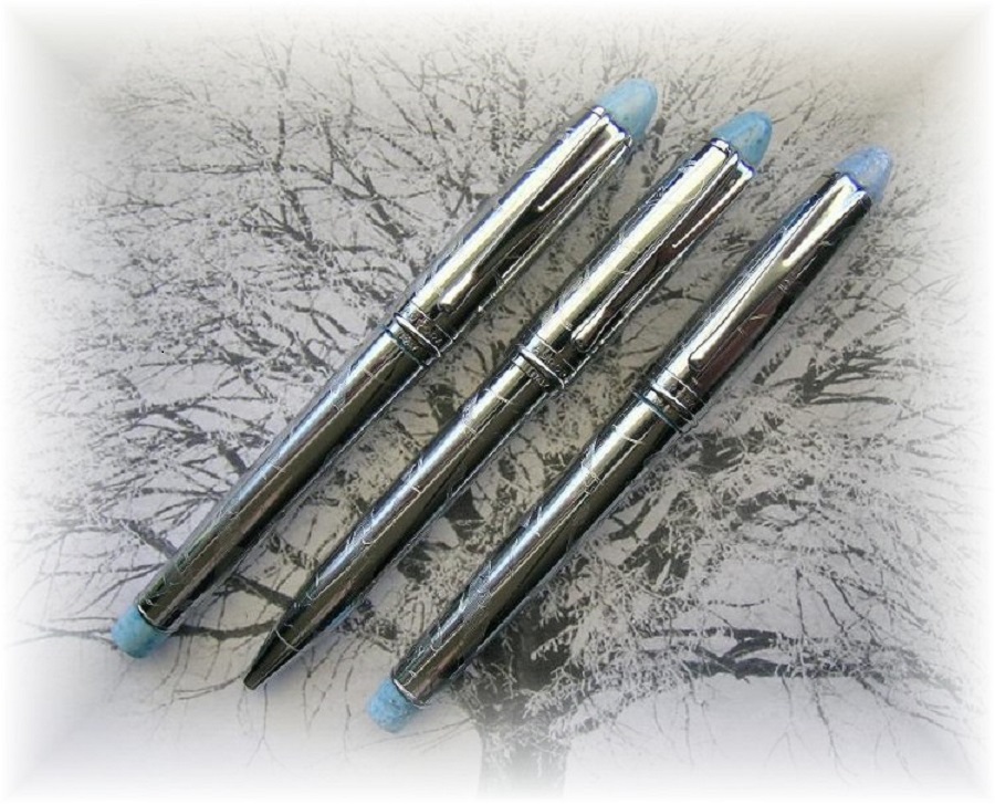 Mi scuso per la scarsa qualità delle mie foto, ma i bellissimi strumenti di scrittura argentati e lucidi non potevano essere fotografati meglio. Almeno non con le mie limitate "possibilità fotografiche".