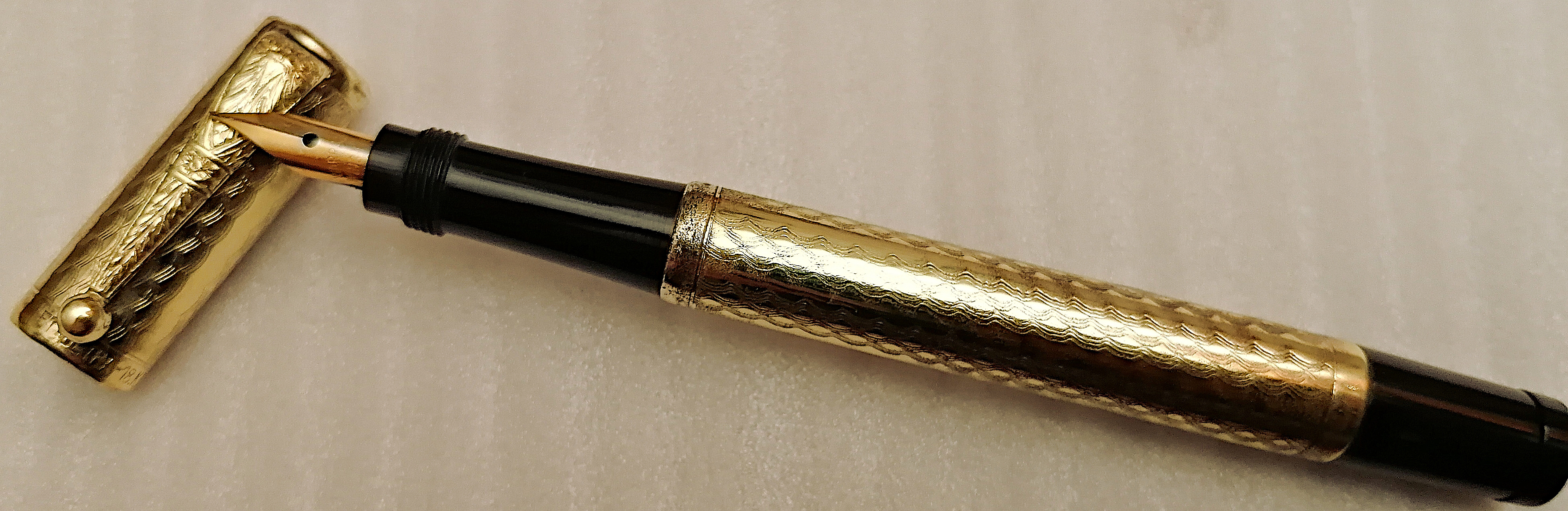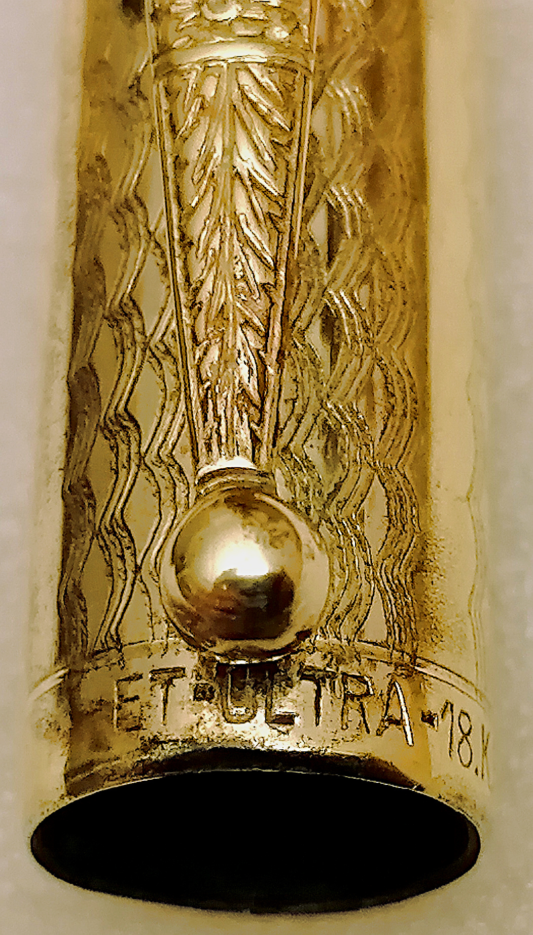 Unico indizio è sul labbro del cappuccio la incisione ET - ULTRA 18 K.R. (Era priva di pennino, quello che si vede è un mio Wing-Flow).