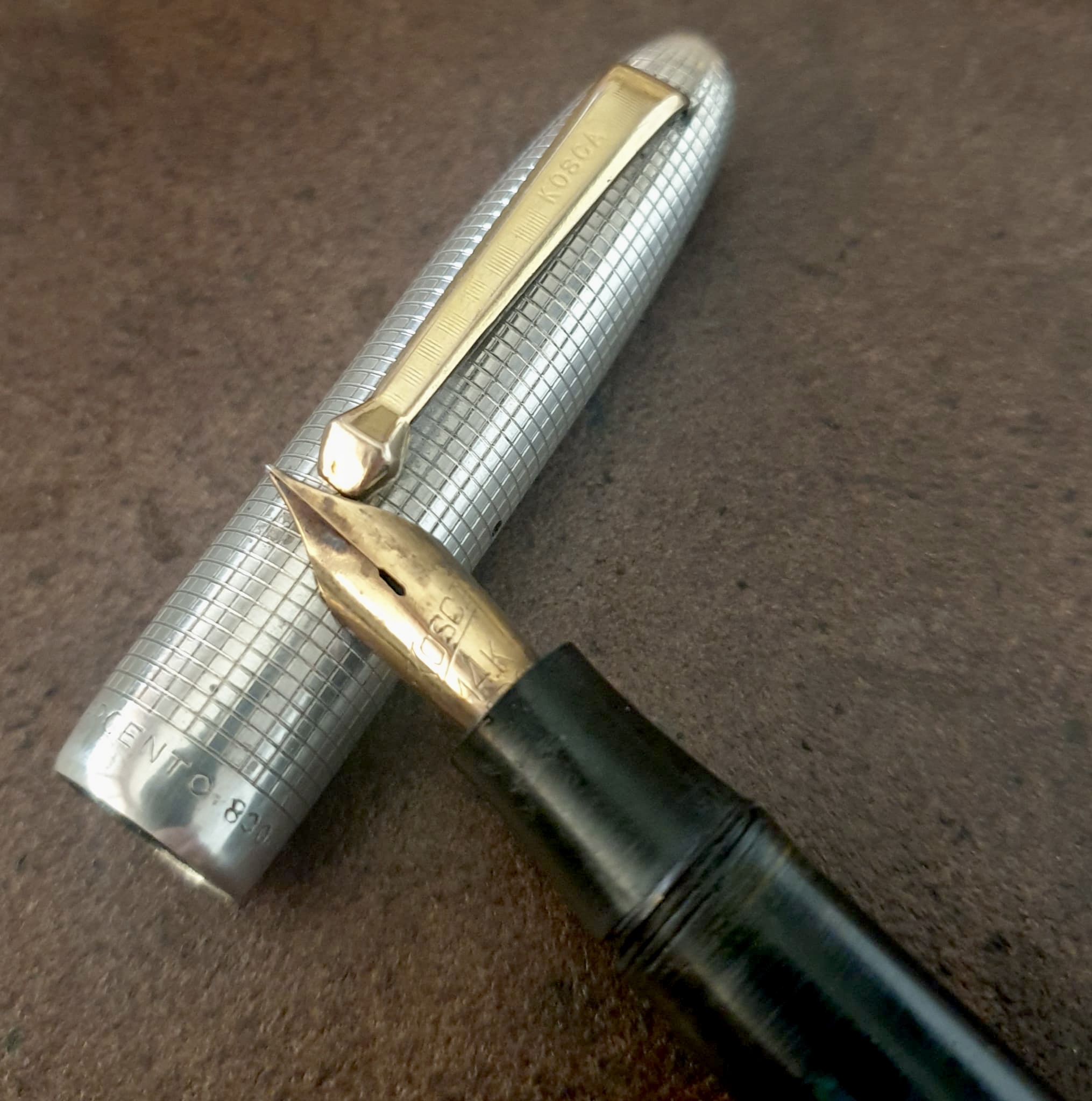 Set Kosca composto da stilografica “S 27” in celluloide e arg. 800, con caricamento a pistone, e da portamine sistema Pix. Anni ‘30 del secolo scorso. Tra le mie preferite.