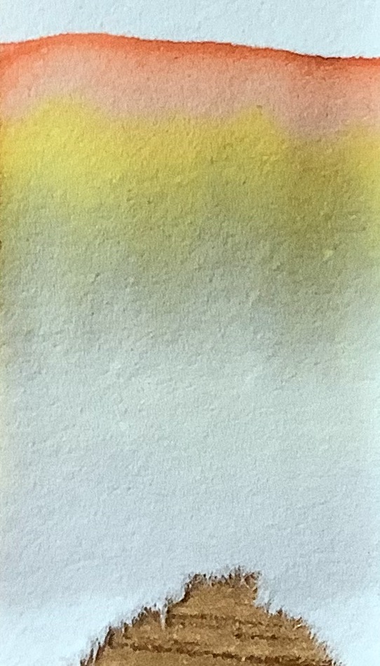 Per la deposizione dell'inchiostro , preferisco tirare con la stilografica una riga lunga circa 4-5 centimetri per poi prendere una porzione di carta di circa 1-2 cm laddove la riga è di spessore costante perché permette una risalita dell'acqua con le componenti dell'inchiostro molto più stabile. Ho provato anche con la goccia, ma poiché la carta da filtro è comunque assorbente, la goccia si spande con un diametro abbastanza ampio (anche 5-6 millimetri) e nella risalita con acqua disturbano la separazione talvolta accavallando alcuni colori che si trovano molto vicini.