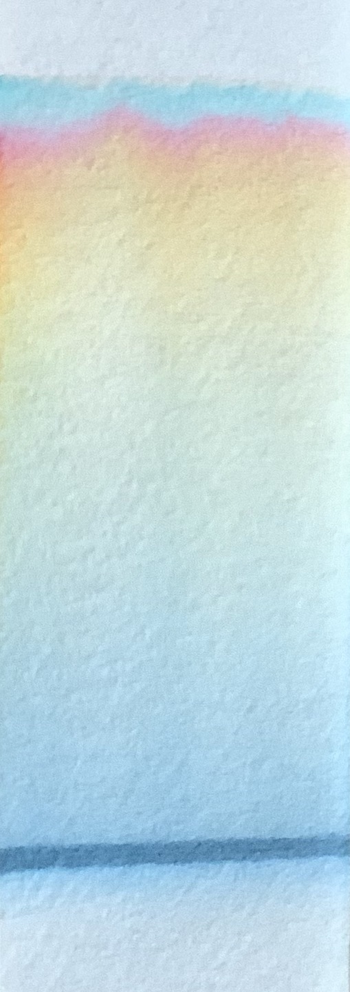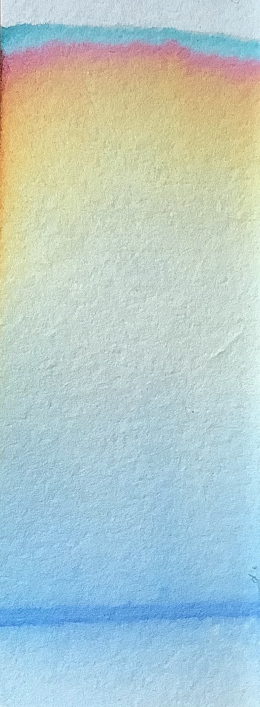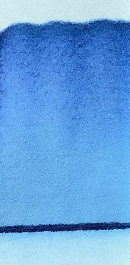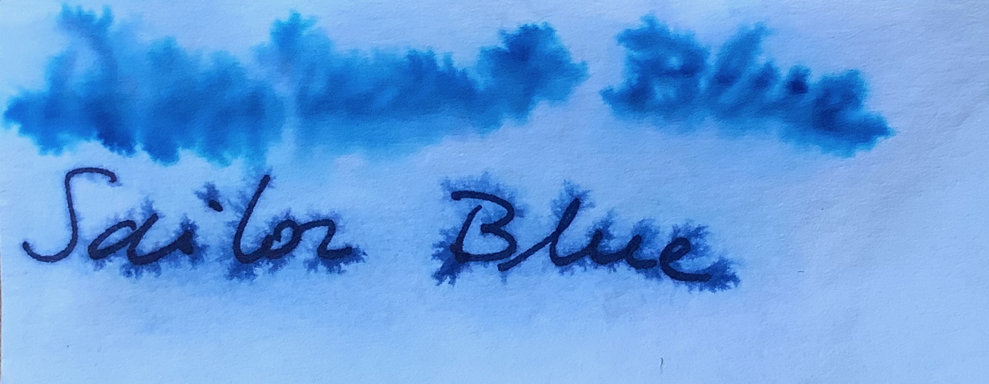 Il Sailor blue è presente (in quantità minore o maggiore) praticamente su tutta la lunghezza della striscia di carta imbibita dall’acqua , mentre il Dominant blue ha praticamente lasciato la zona di deposizione dell’inchiostro ed è migrato tutto nella zona superiore dove l’acqua ha terminato la sua corsa sul foglio. Intuitivamente si direbbe che il Sailor è più affine alla carta rispetto al Dominat.