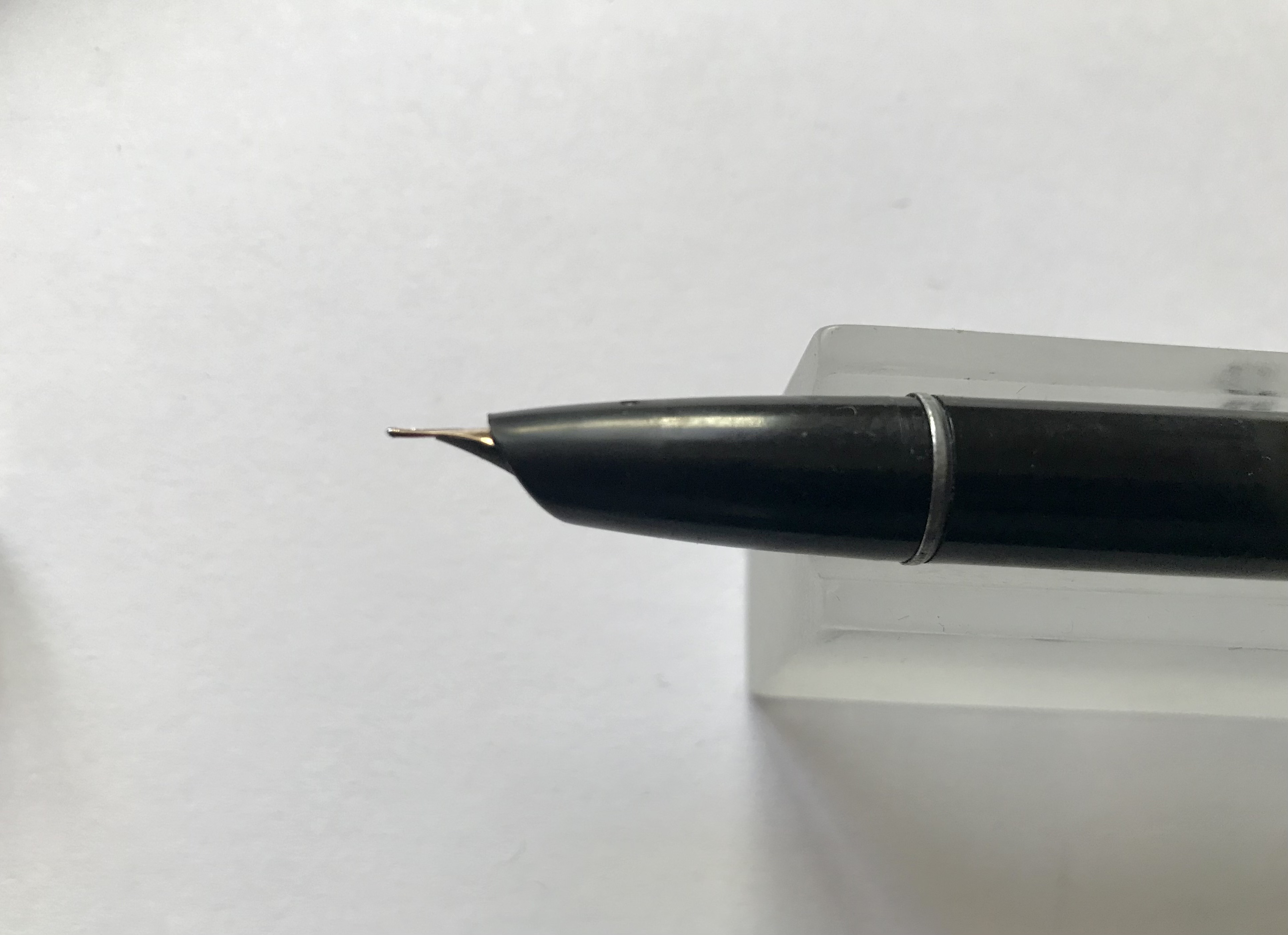 Il pennino è carenato in oro 14 Kt, un bel semiflex