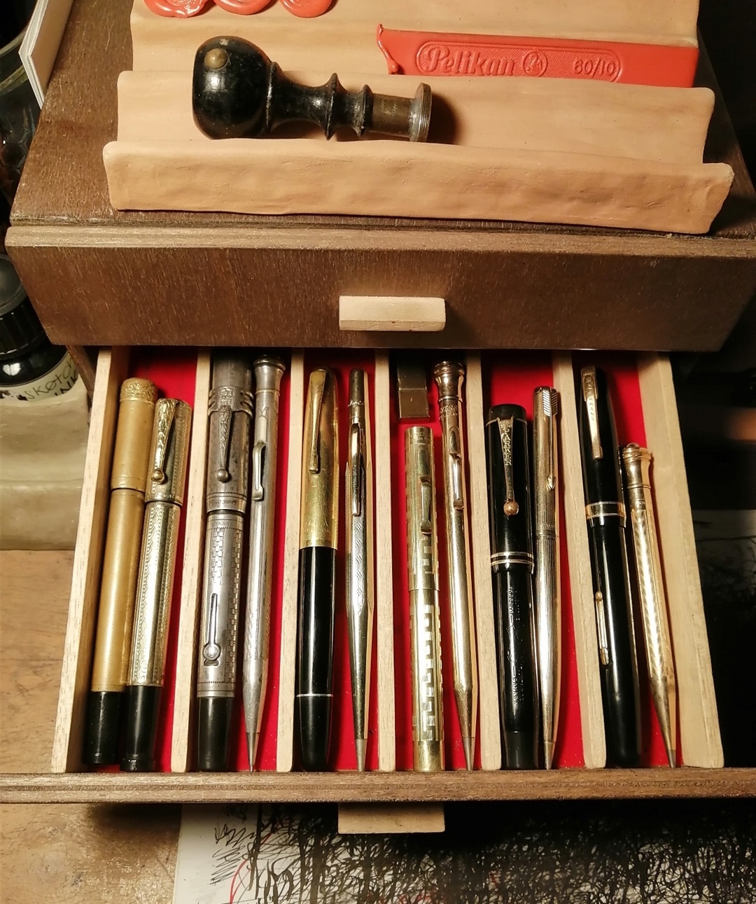 Per i più curiosi aggiungo la foto del mio cassettino preferito, in cui ci sono le penne che uso di più. Anche se a dire il vero forse non uso nessuna delle mie penne tanto quanto uso gli stilofori..