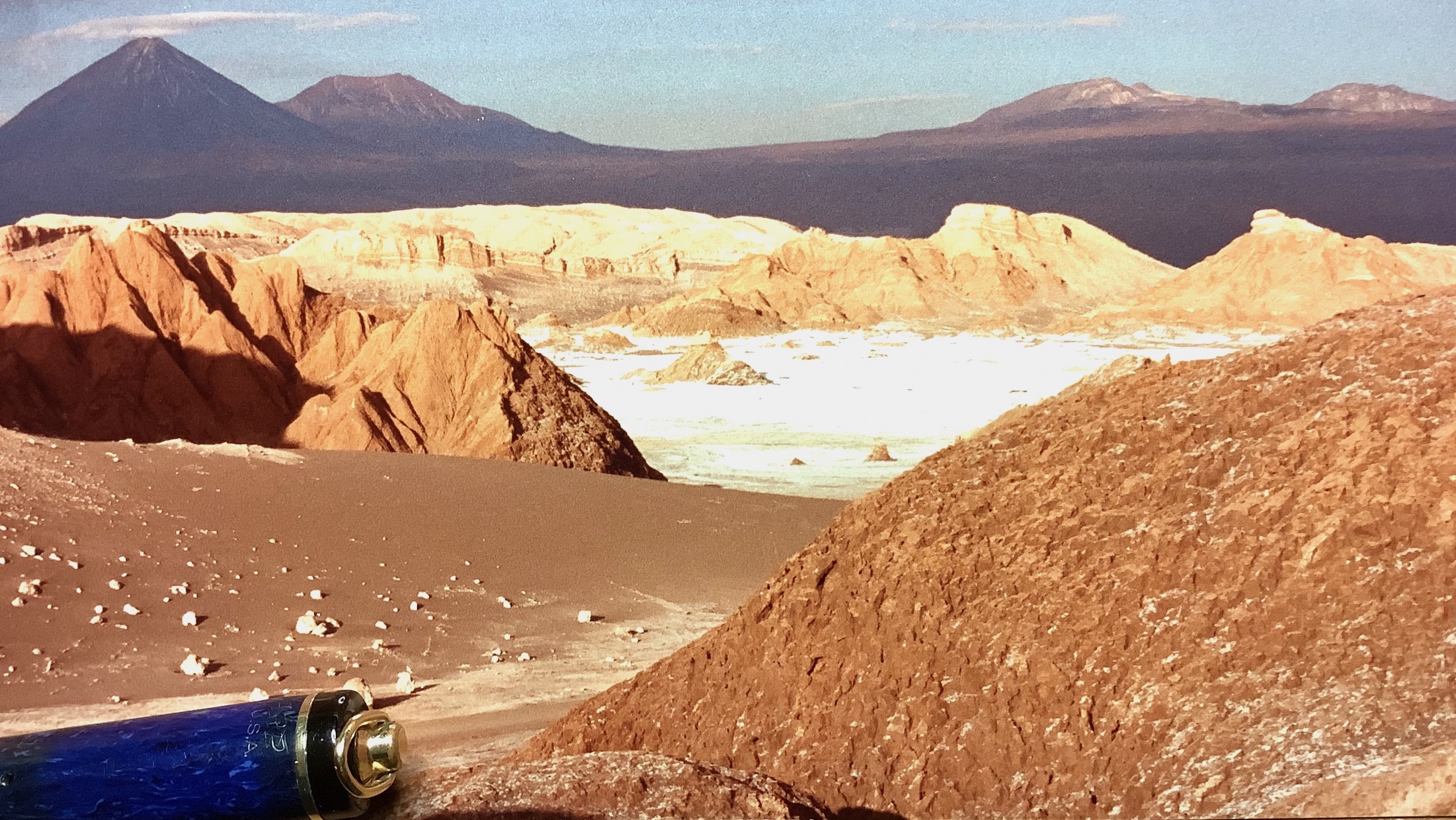 La foto è una zona a sud del Salar De Atacama in Cile ; sullo sfondo a sinistra la caldera del vulcano La Pacana