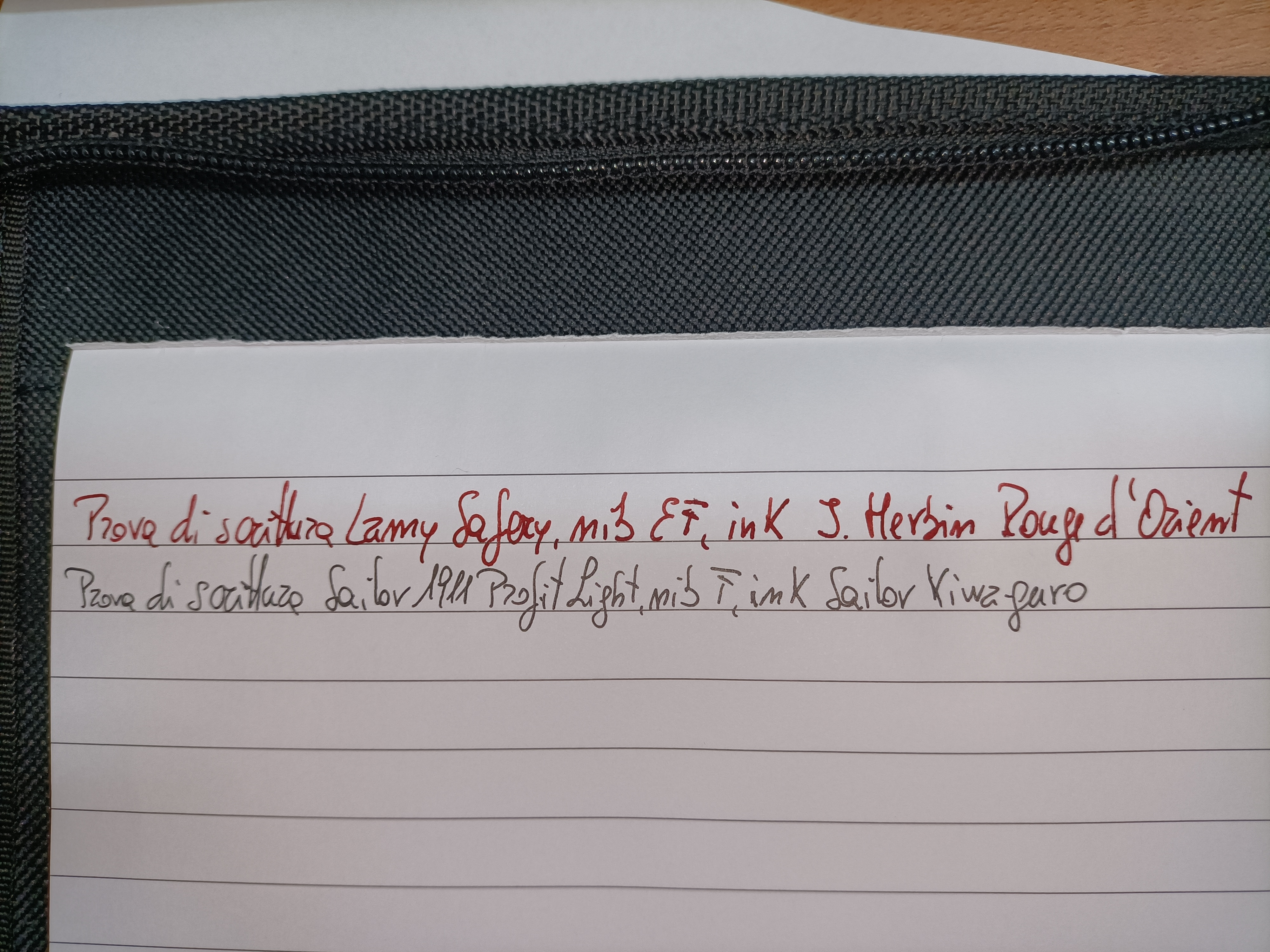 In entrambi i casi prediligo il pennino F, ma da quello che ho capito leggendo questo forum le misure dei pennini Sailor sono diverse rispetto a quelle europee.