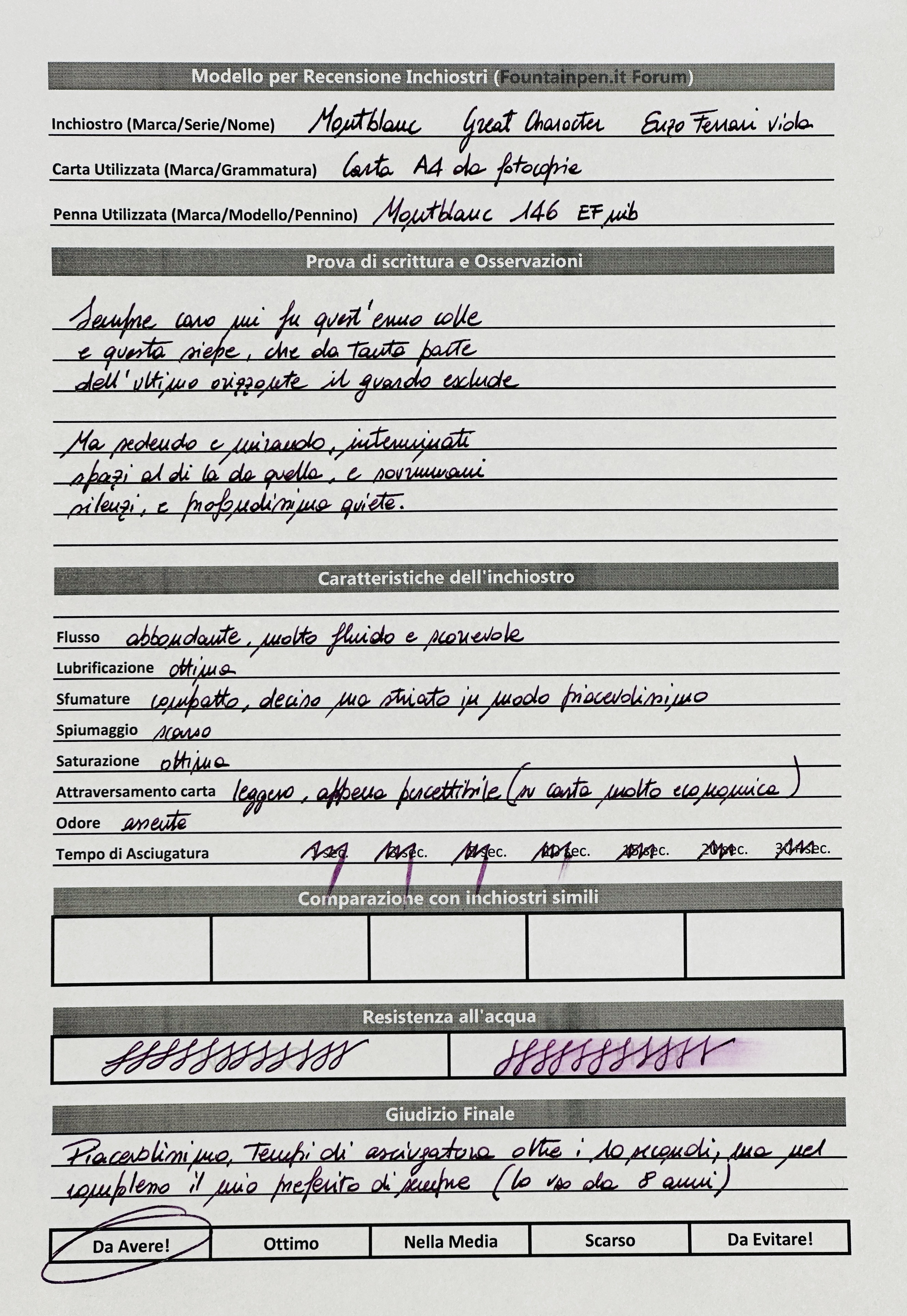come promesso ecco la prova dell'inchiostro Montblanc Great Character Enzo Ferrari purple.