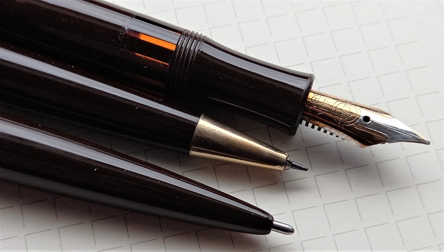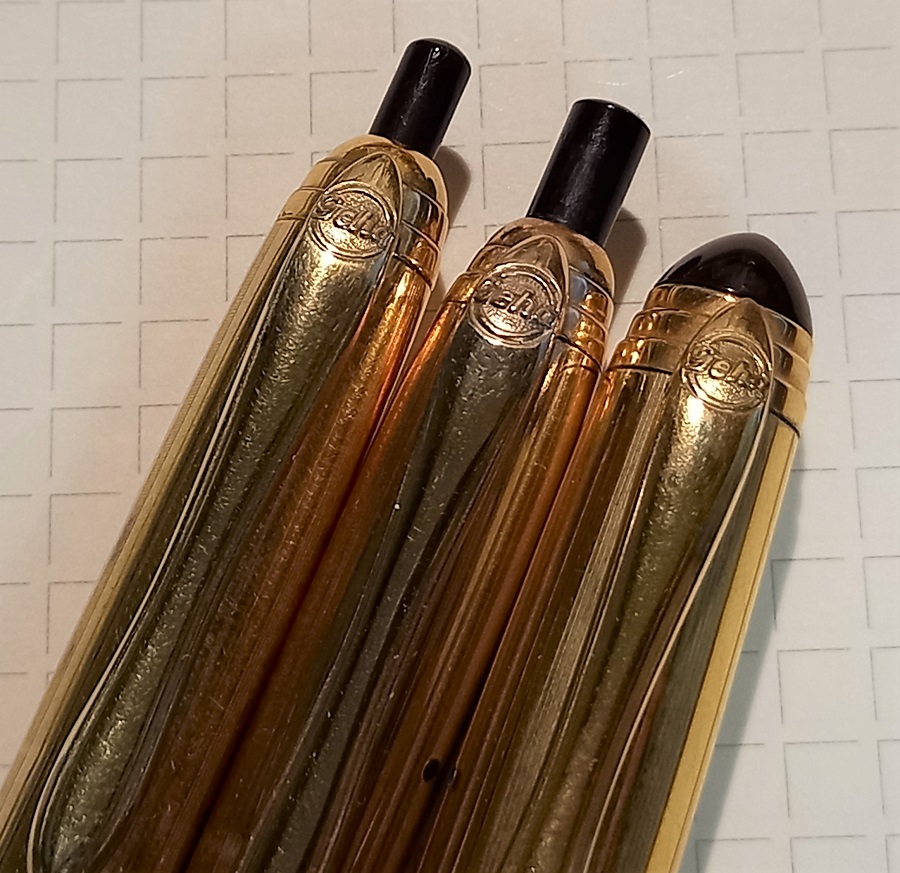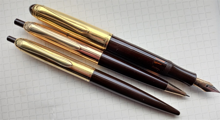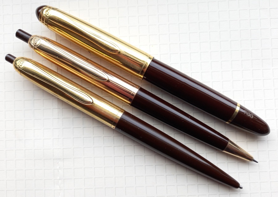 Bel trio! soprattutto la stilografica. E' questo un marchio a cui tengo molto per la qualità dei suoi prodotti e che - soprattutto - non sfigurano affatto nei confronti della diretta concorrente dell'epoca (credo Pelikan).