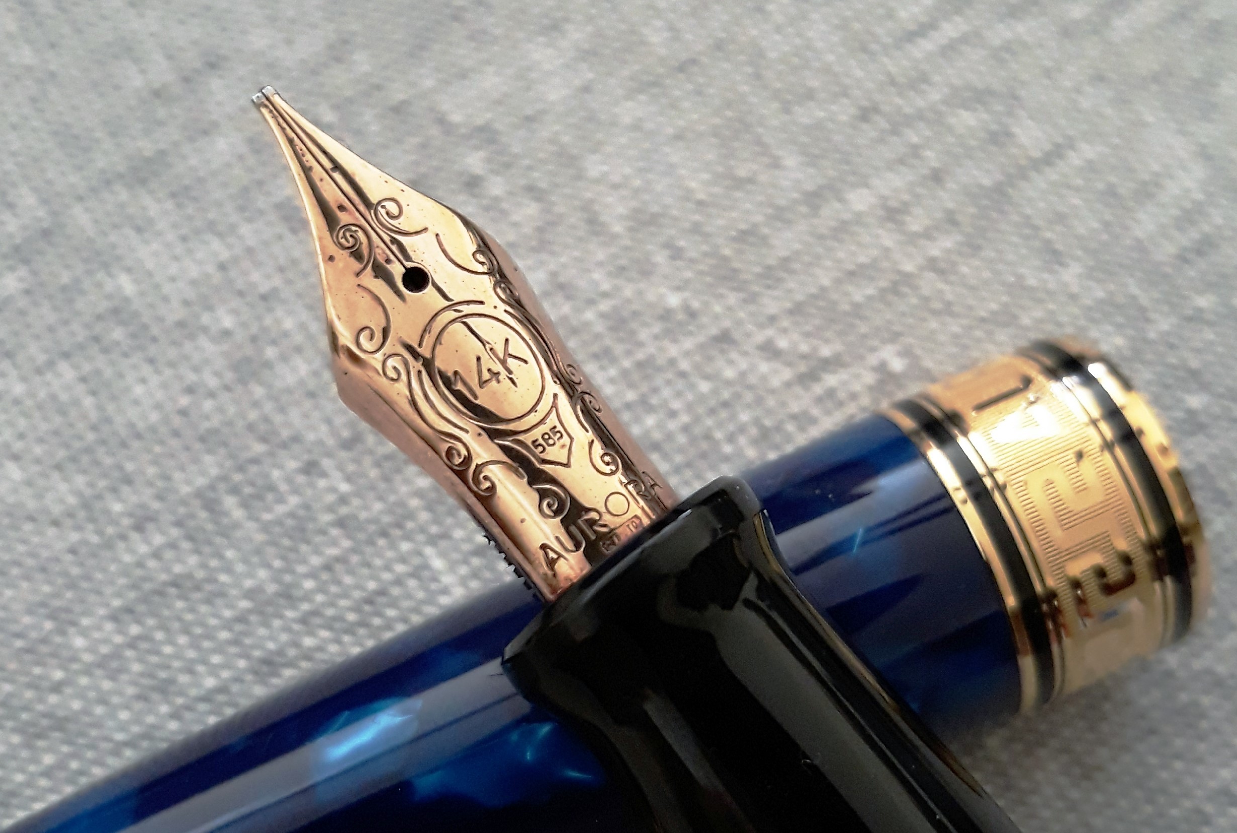 Non hai affrontato l'argomento pennini, ma è uno dei punti forti. Sebbene da un certo numero di anni Aurora abbia abbandonato la versione rebbi lunghi, che aveva quel poco di morbidezza in più, in genere comunque i pennini sono piuttosto belli. E' noto che siano mediamente corretti (nel senso che non sono abbondanti di tratto come alcune tedesche), con l'alimentatore in ebanite, e un flusso molto costante e corretto anche quello,  non siano super scorrevoli ma che abbiano quel poco di "ruvidezza" in più che ti fa sentire la carta. Sono svitabili, con un collare proprietario, quindi se hai più Aurora li puoi scambiare (Optima, 88big e Talentum hanno lo stesso gruppo di scrittura). Purtroppo i pennini speciali, come stub, CI, e alcuni altri, hanno un sovrapprezzo non indifferente. Sono tutti in oro, non esiste per queste penne la versione in acciaio.