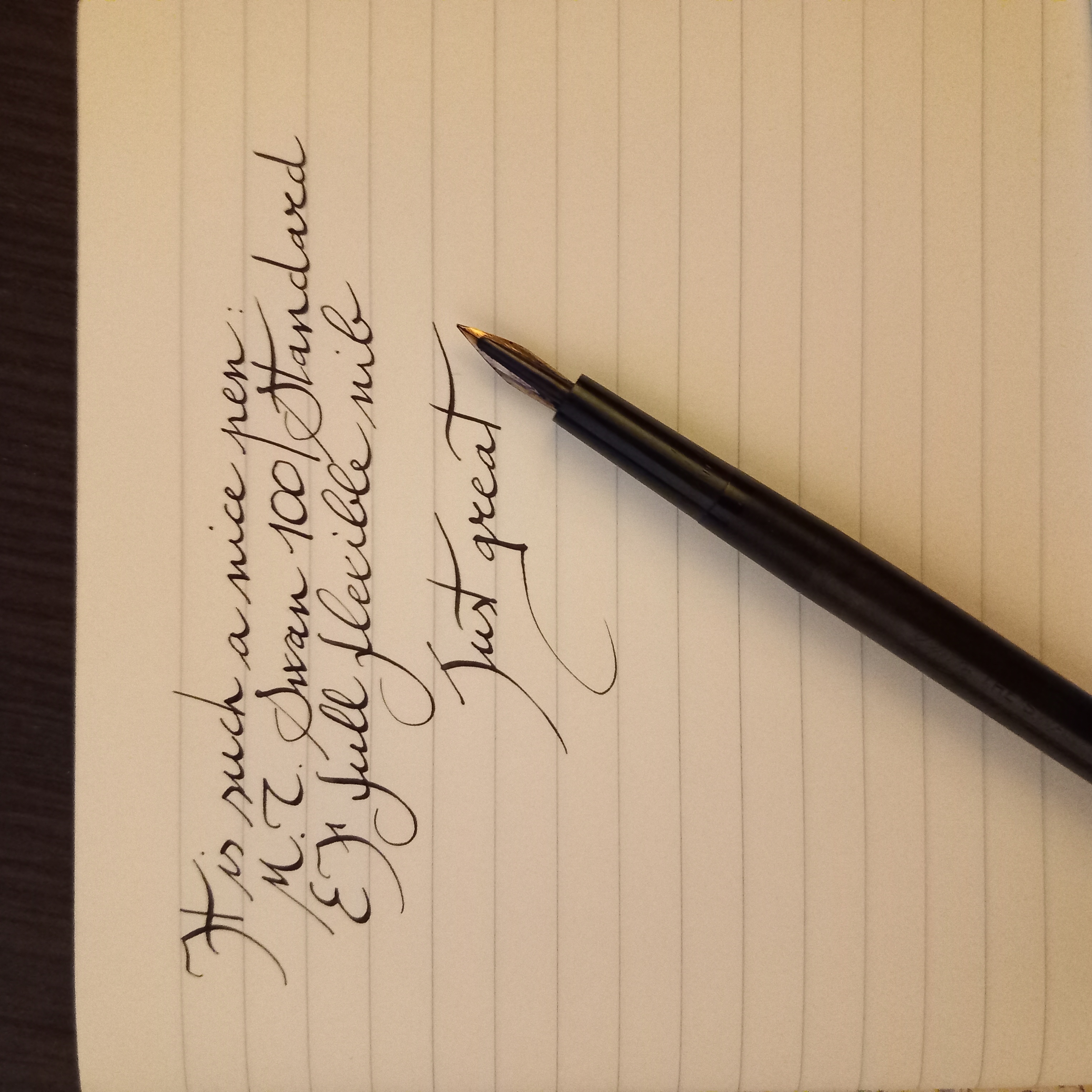 Ho desiderato aggiungere questa penna alla mia modesta collezione (nonostante il cappuccio sia, molto evidentemente, un rimpiazzo, anche se con tutta probabilità dell'epoca) a causa del suo pennino, un flessibile molto godibile ed in perfette condizioni, nonostante l'uso e l'età. Un vero "wet noodle", come dicono gli anglosassoni. La penna è stata utilizzata molto ma è ancora in perfetta efficienza.
