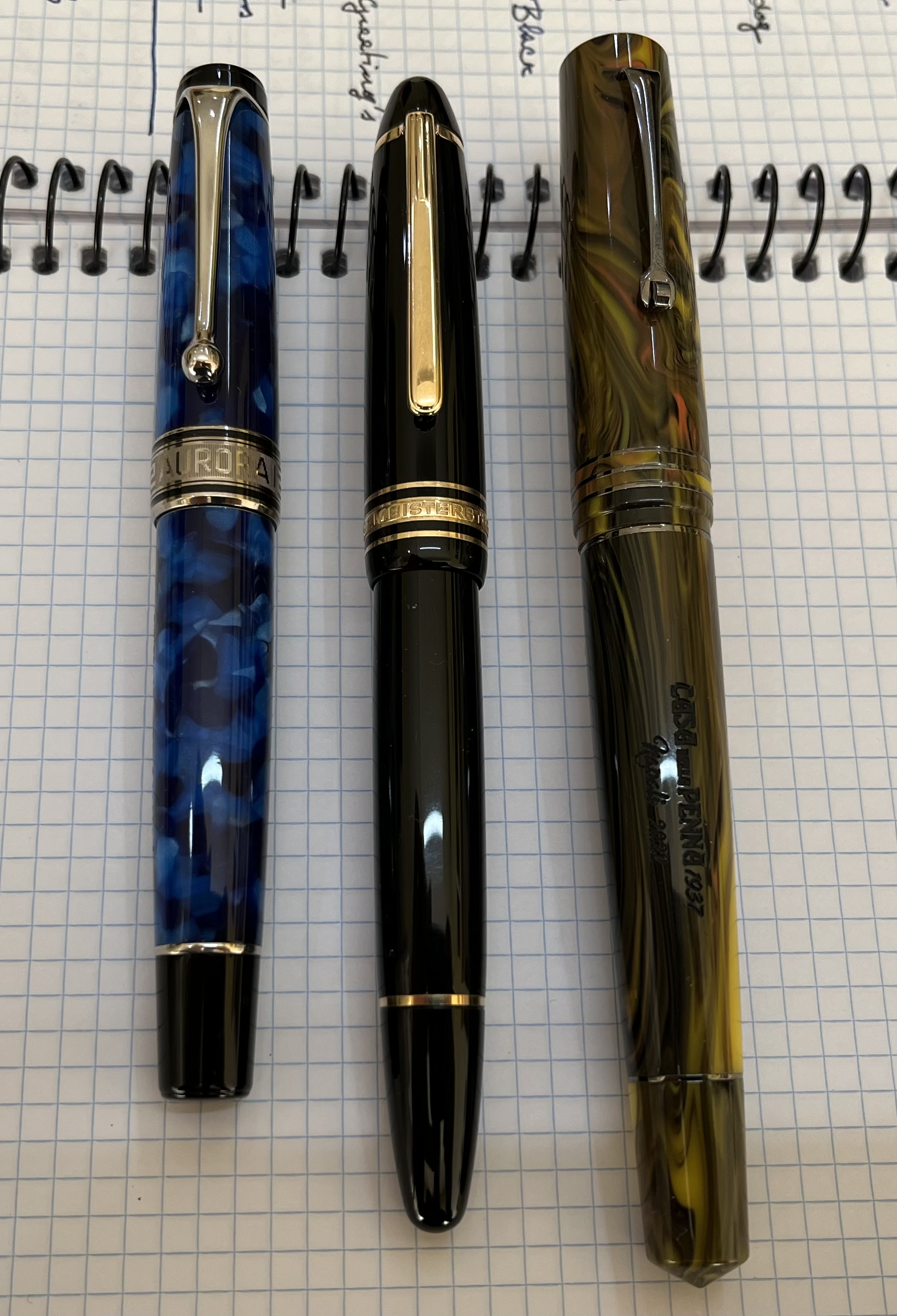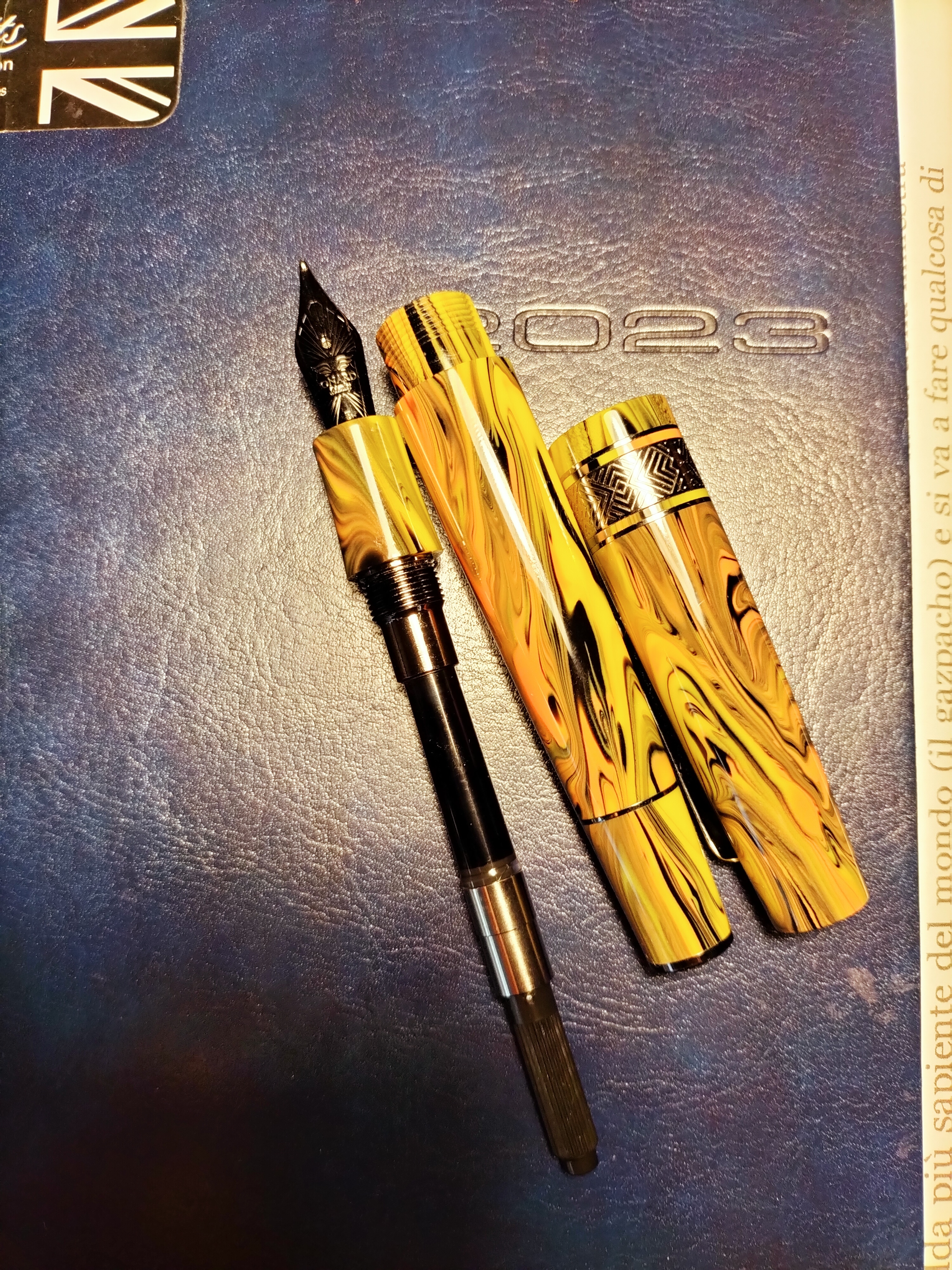 I confronti sono finiti e mi godo questa Leonardo Supernova che ha una sua personalità autunoma. Le dimensioni sono grosso modo quelle delle Leonardo: Lunghezza con cappuccio: 141,0 mm / Lunghezza cappuccio calzato: 163,3 mm / Lunghezza del corpo: 126,7 mm / Lunghezza del cappuccio: 65,5 mm / Diametro del corpo: 14,5 mm / Diametro del cappuccio: 14,7 mm / Diametro dell'impugnatura: 10,9 mm / Peso: 28,63 g.