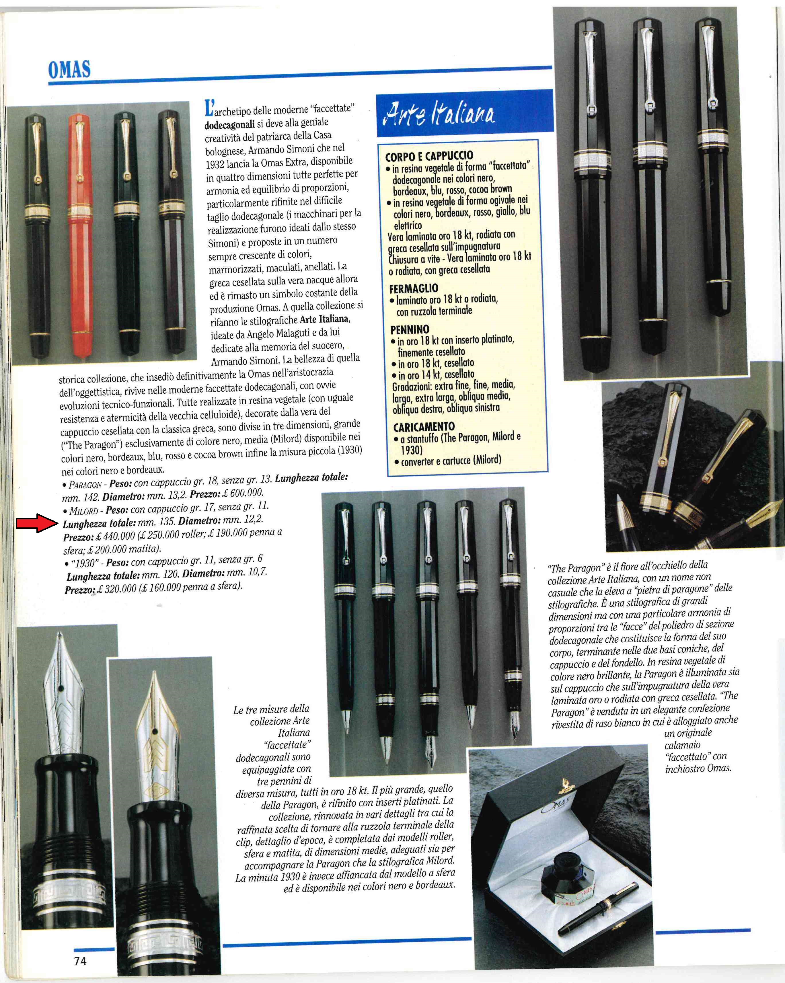 "In 1997 Omas finally adopted the traditional looking roller clip for the Paragon models and started using it on the Milord series, as well."