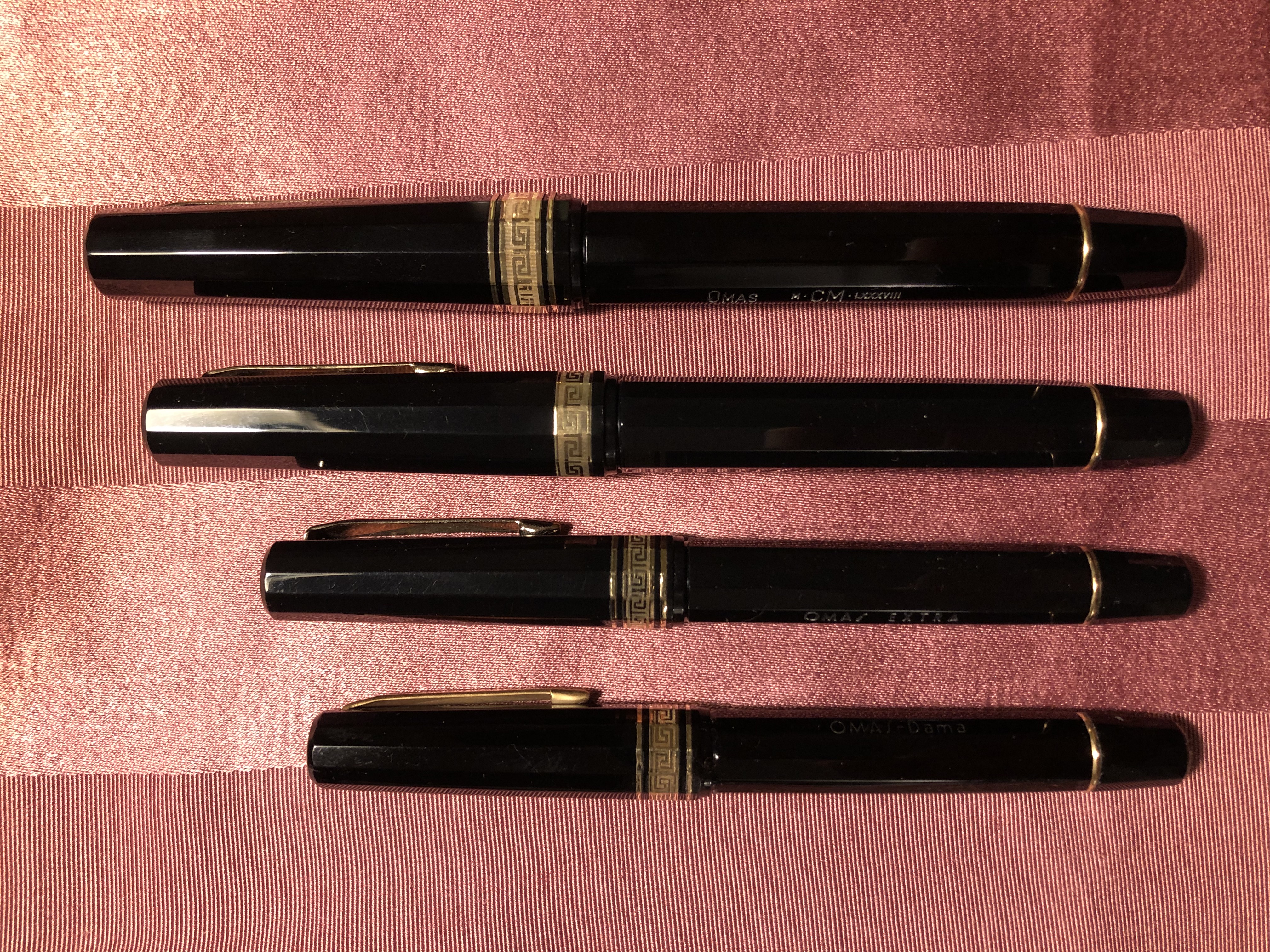 Quando è stata introdotta la clip a ruzzolina invece della clip a cravatta, alcune penne hanno perso del tutto la dicitura sul fusto, e Omas ha fatto anche alcune versioni (forse per il mercato americano) con le greche sulla sezione anche nelle versioni Milord e Lady...