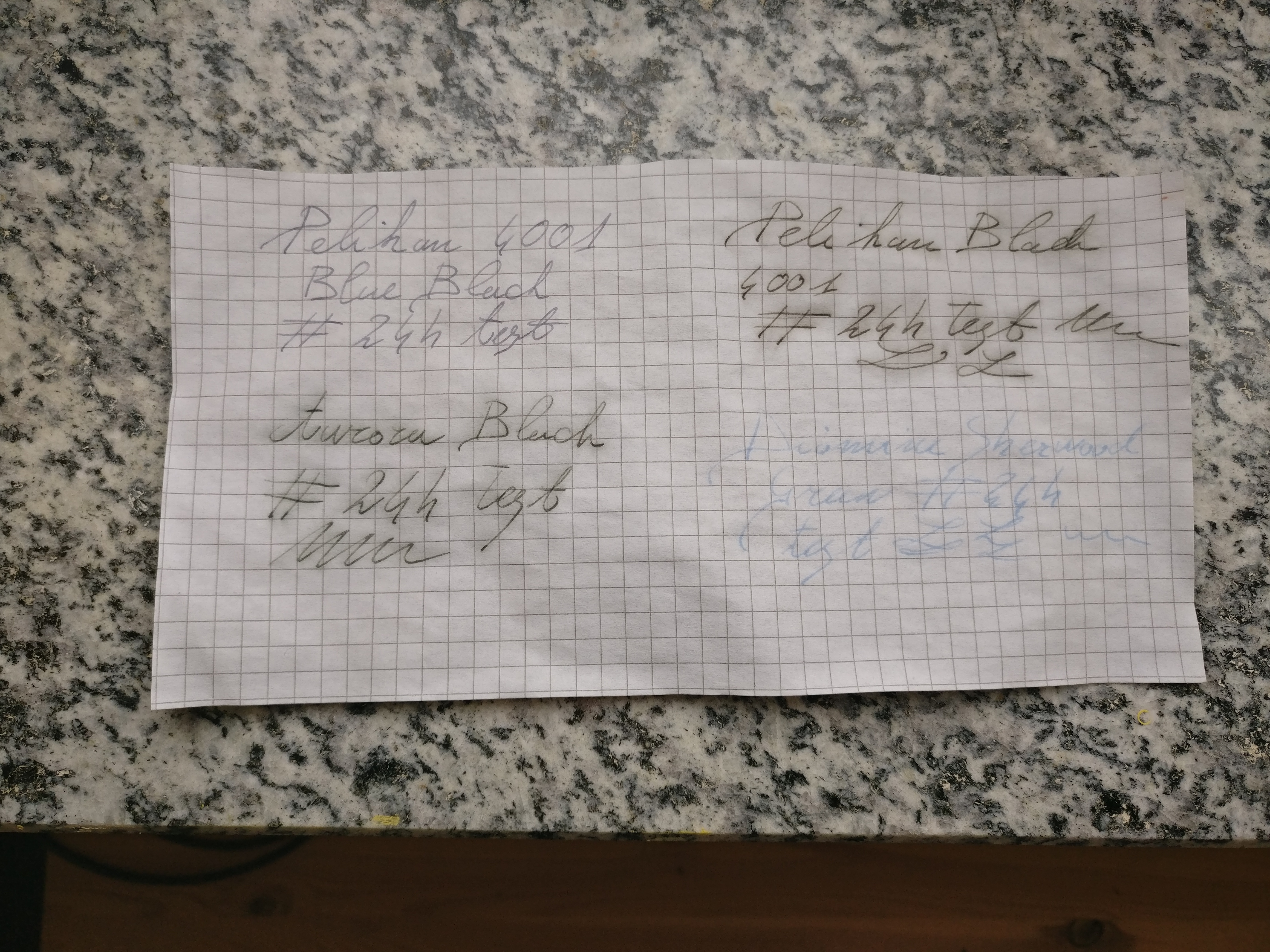 E ho scritto su un foglio Blasetti con Nero Auroa, Pelikan Black, Pelikan Blue Black...