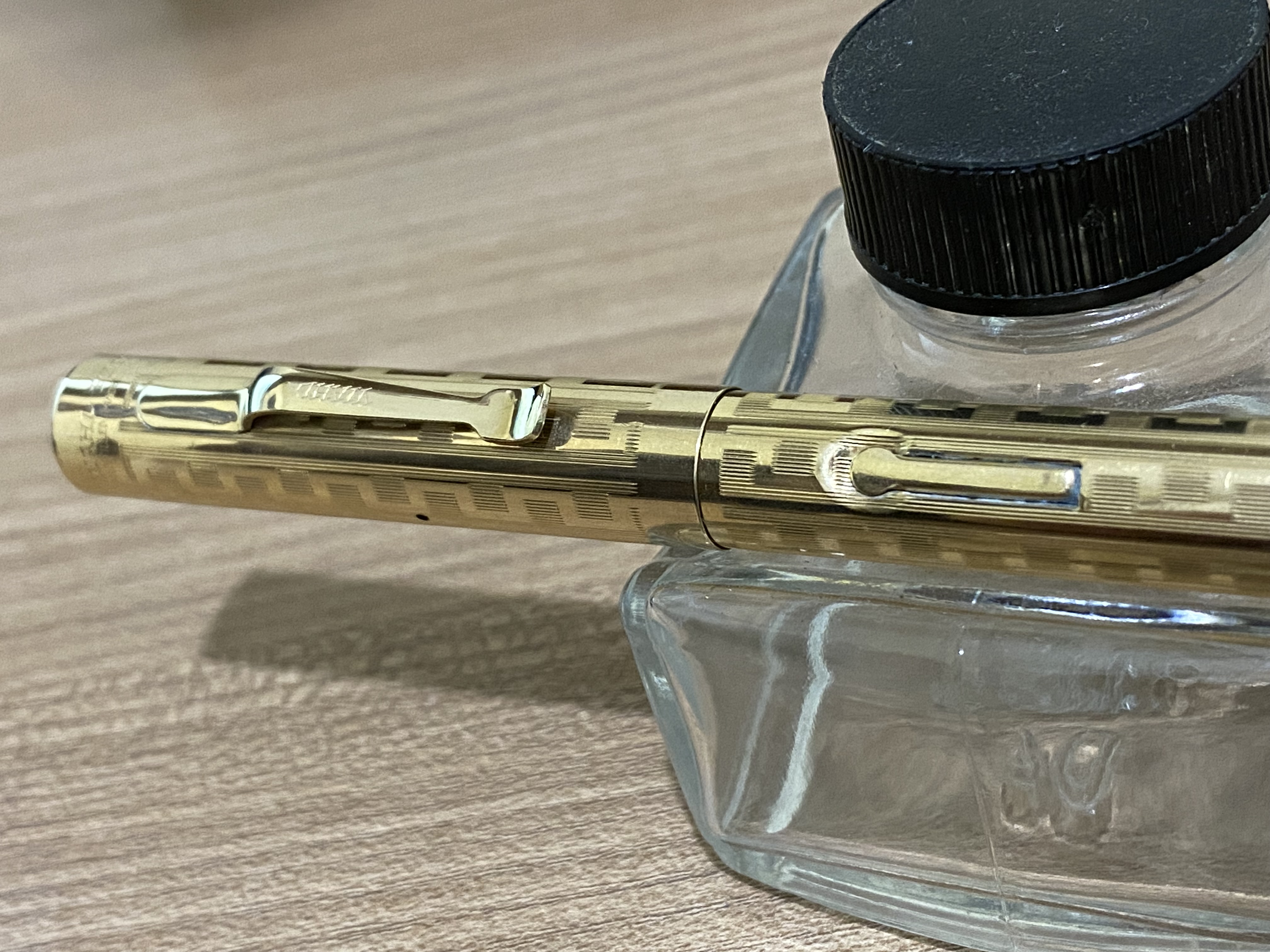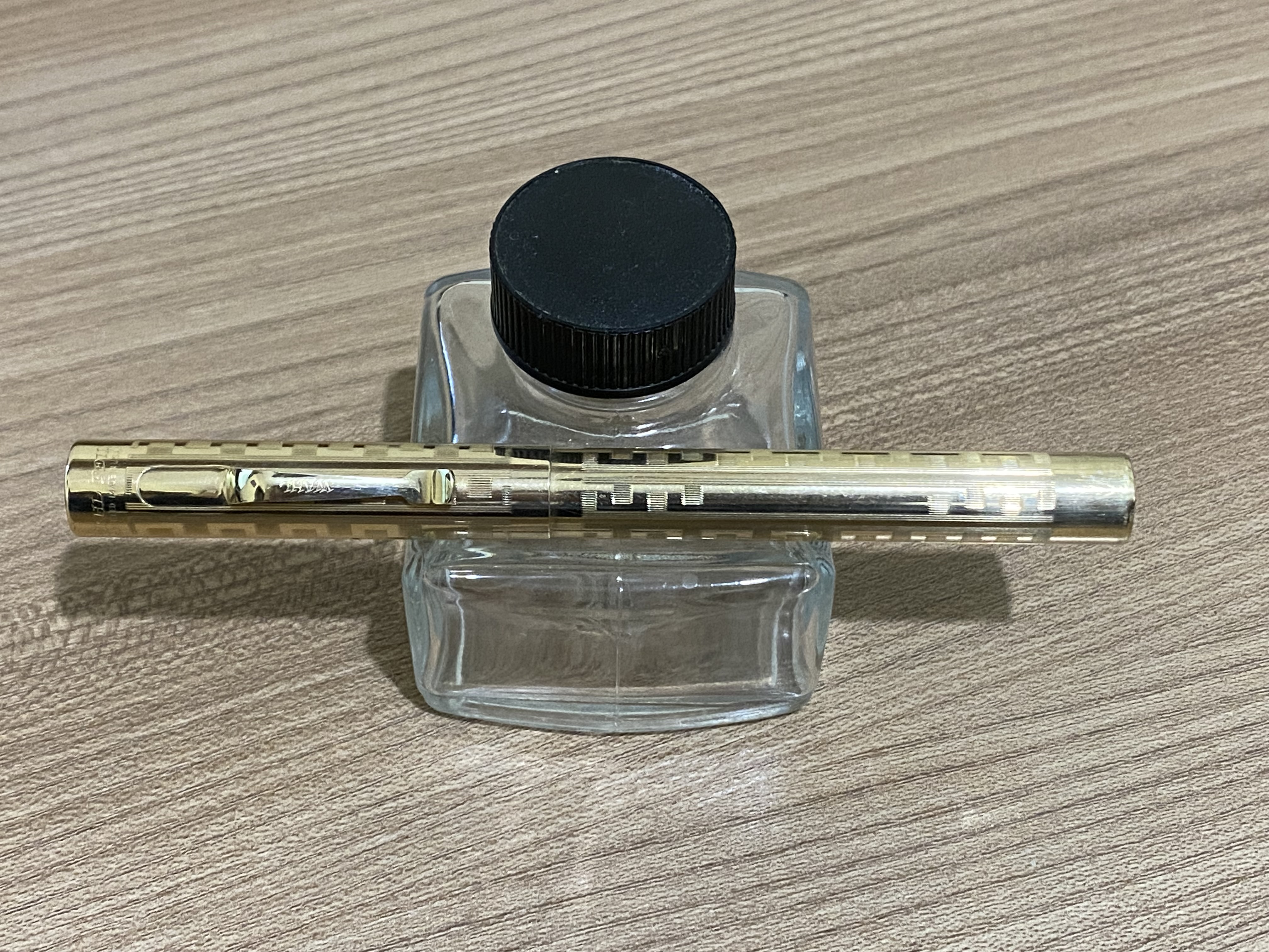 Ho provato una nr 3 qualche sera fa ad uno dei nostri raduni ed aveva un pennino flessibile a dir poco emozionante! Proprio nello stesso pattern, il Grecian Border, che trovo essere uno dei più belli nonché significativi dello stile Art Dèco che già caratterizzava la produzione dell’epoca di Wahl.