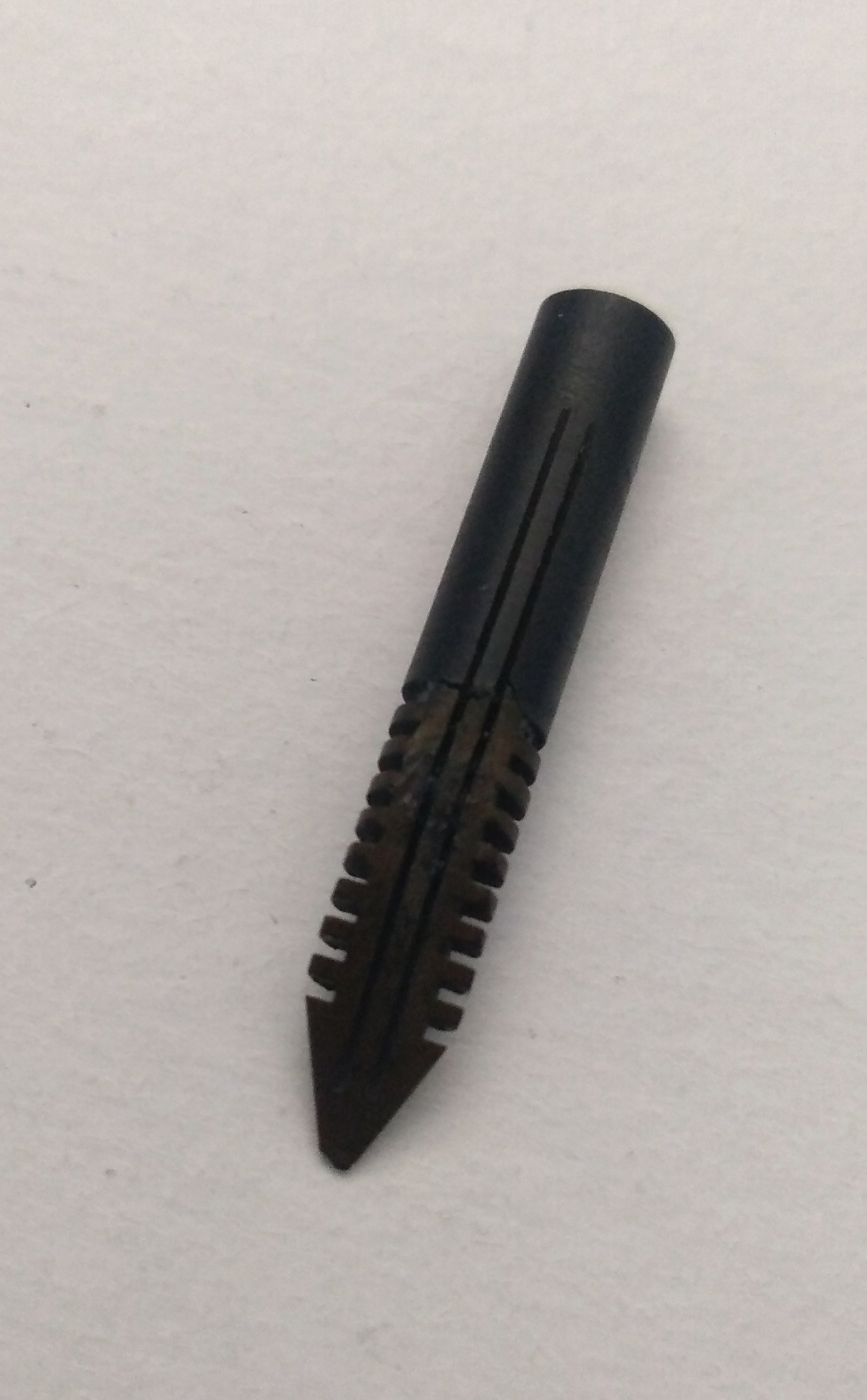 Se si è spezzato di netto, può essere agevolmente reincollato con cianoacrilato, che con l'ebanite funziona molto bene.