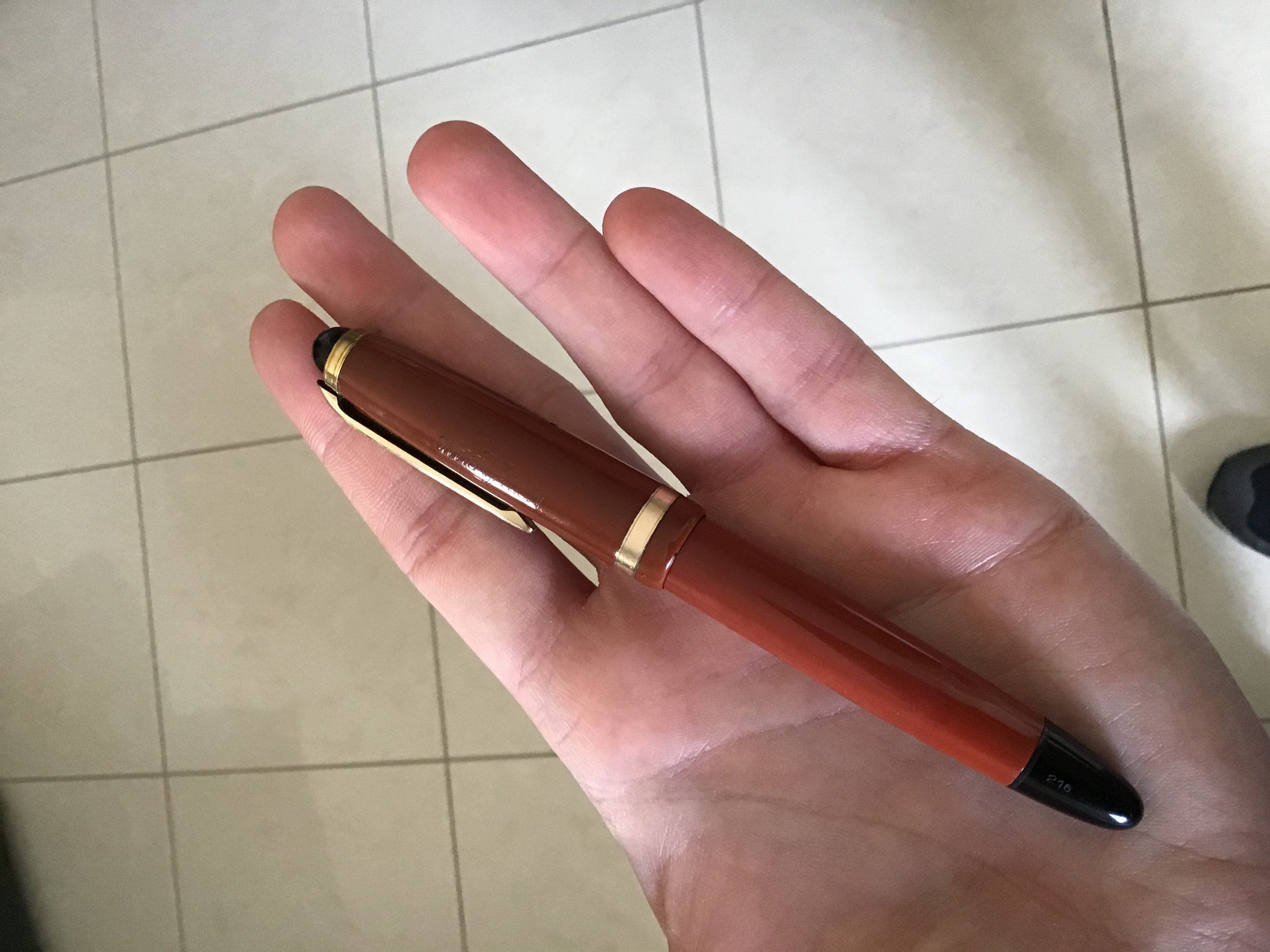 La mia 216, confrontata con una Pelikan P205 e nella mia mano