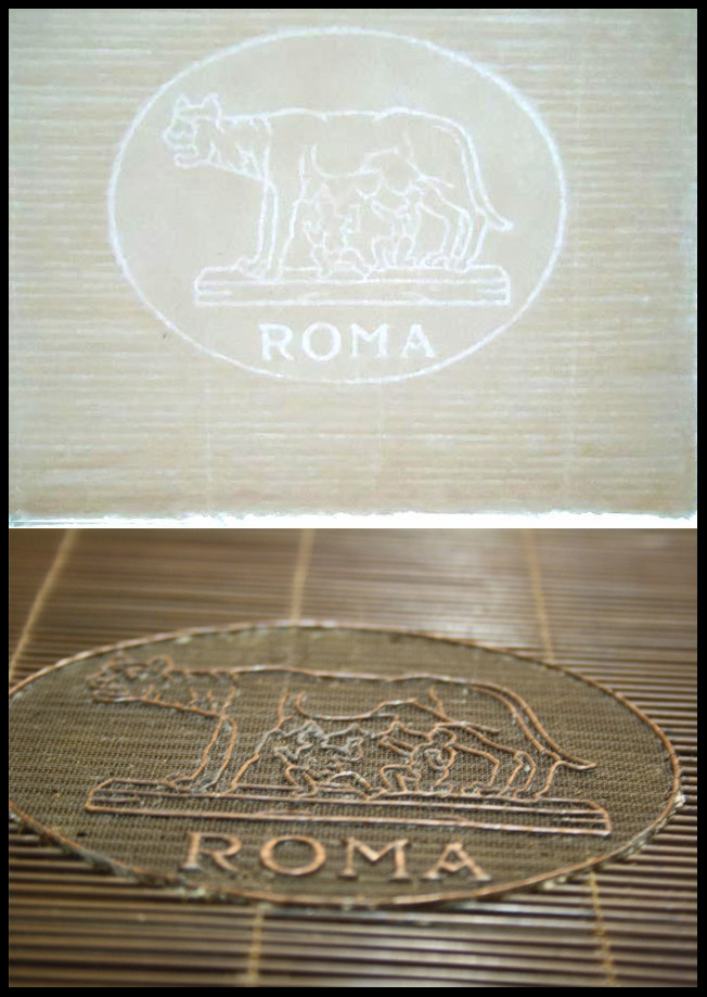 La Roma è una carta a mano composta da cotone al 100%, dai bordi intonsi, vergata e filigranata, di 130 g/mq. Viene venduta in fogli da 48x66 cm, con le catenelle parallele al lato corto e le millerighe al lato lungo. Ha pH neutro, é priva di cloro e inalterabile nel tempo. La bellissima filigrana, grande, riproduce in basso a sinistra la scritta C.M. FABRIANO e in basso a destra l'immagine della lupa che allatta i due gemelli e la scritta ROMA.