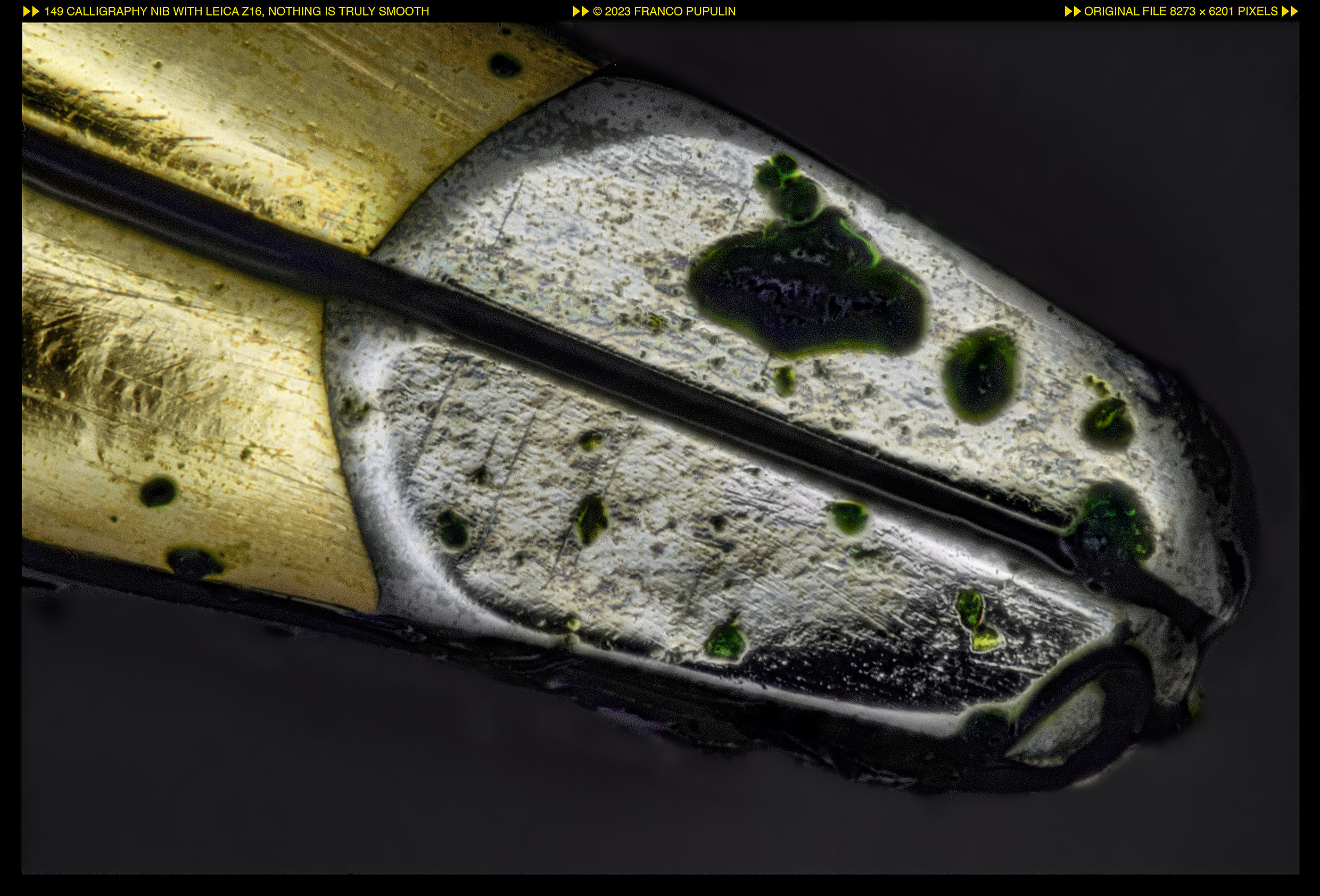 Molto interessante e molto affascinante la foto. Certo che sembra più levigata la parte in oro del pennino che non il riporto in lega della punta.