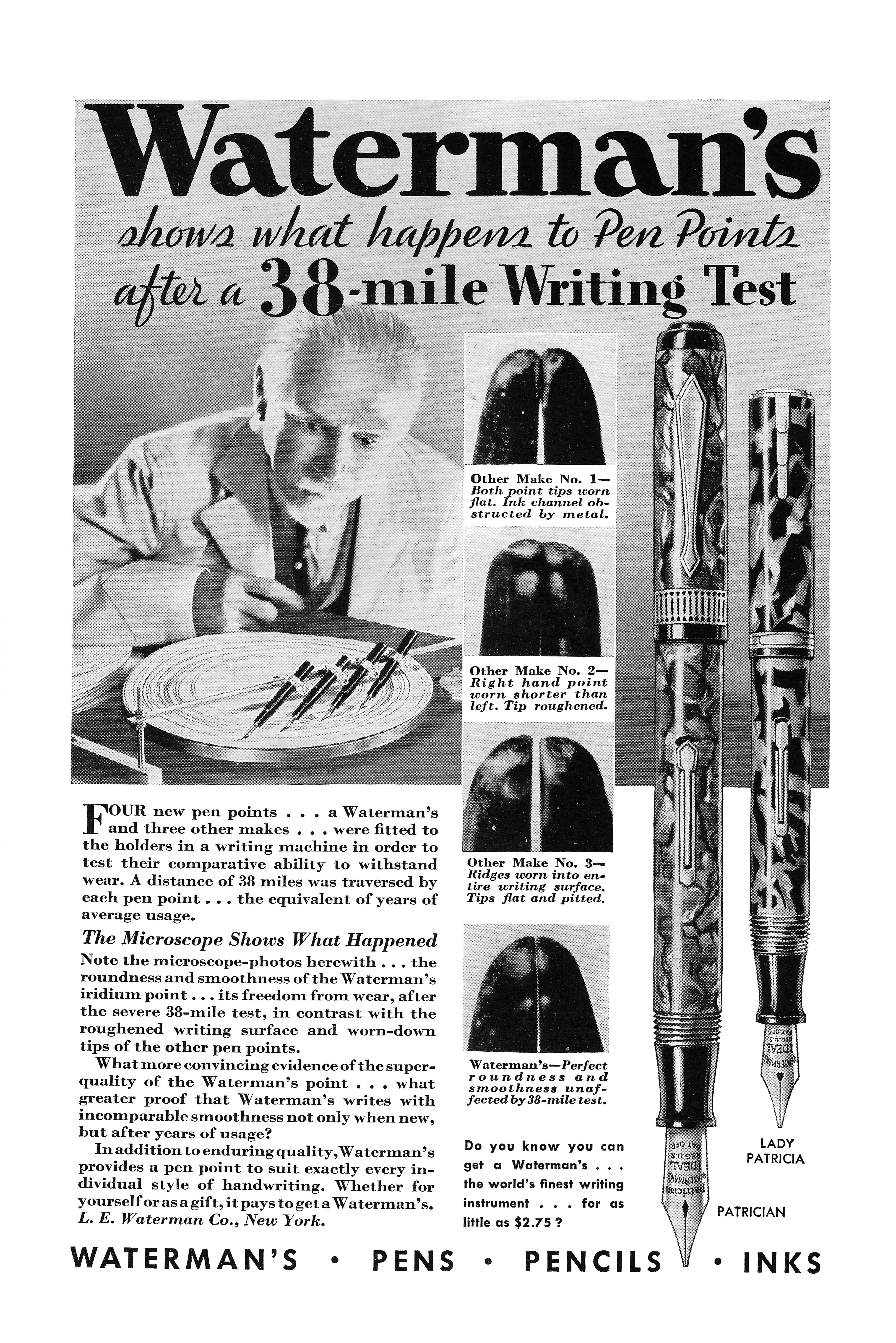 Tra i primissimi esempi dell'uso in pubblicità di ingrandimenti mediante microscopio si possono annoverare quelli di una campagna della Waterman di oltre novant'anni fa, a cui appartiene anche questa pubblicità comparativa veramente efficace... https://www.fountainpen.it/File:1932-09 ... n-Lady.jpg