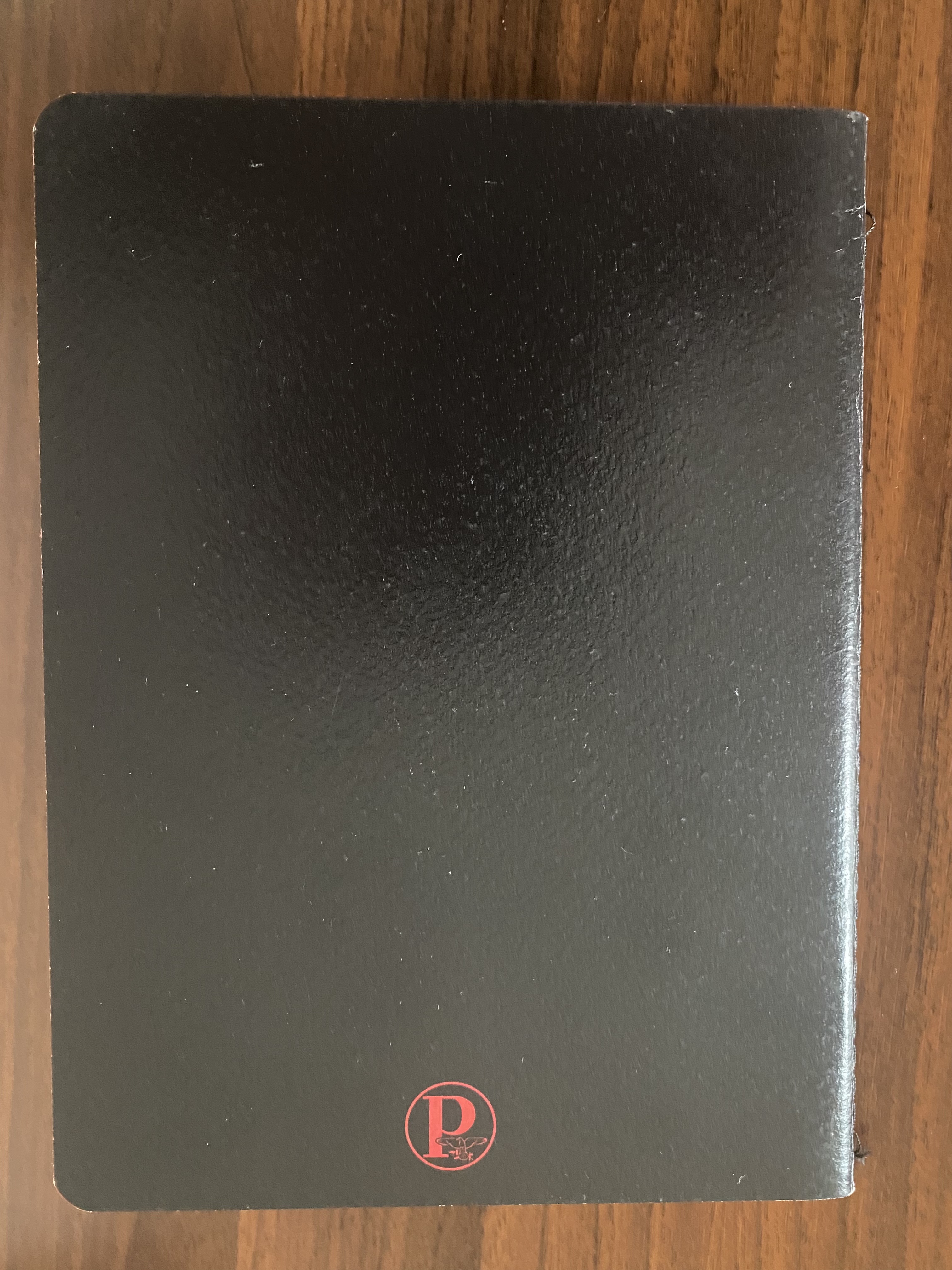 Copertina cartoncino rigido, nera lucida non liscia, logo pigna rosso sul retro, controcopertina di ‘peso’ maggiore rispetto ai fogli, che comunque non si stropicciano e sono di una bella grammatura (non specificata).