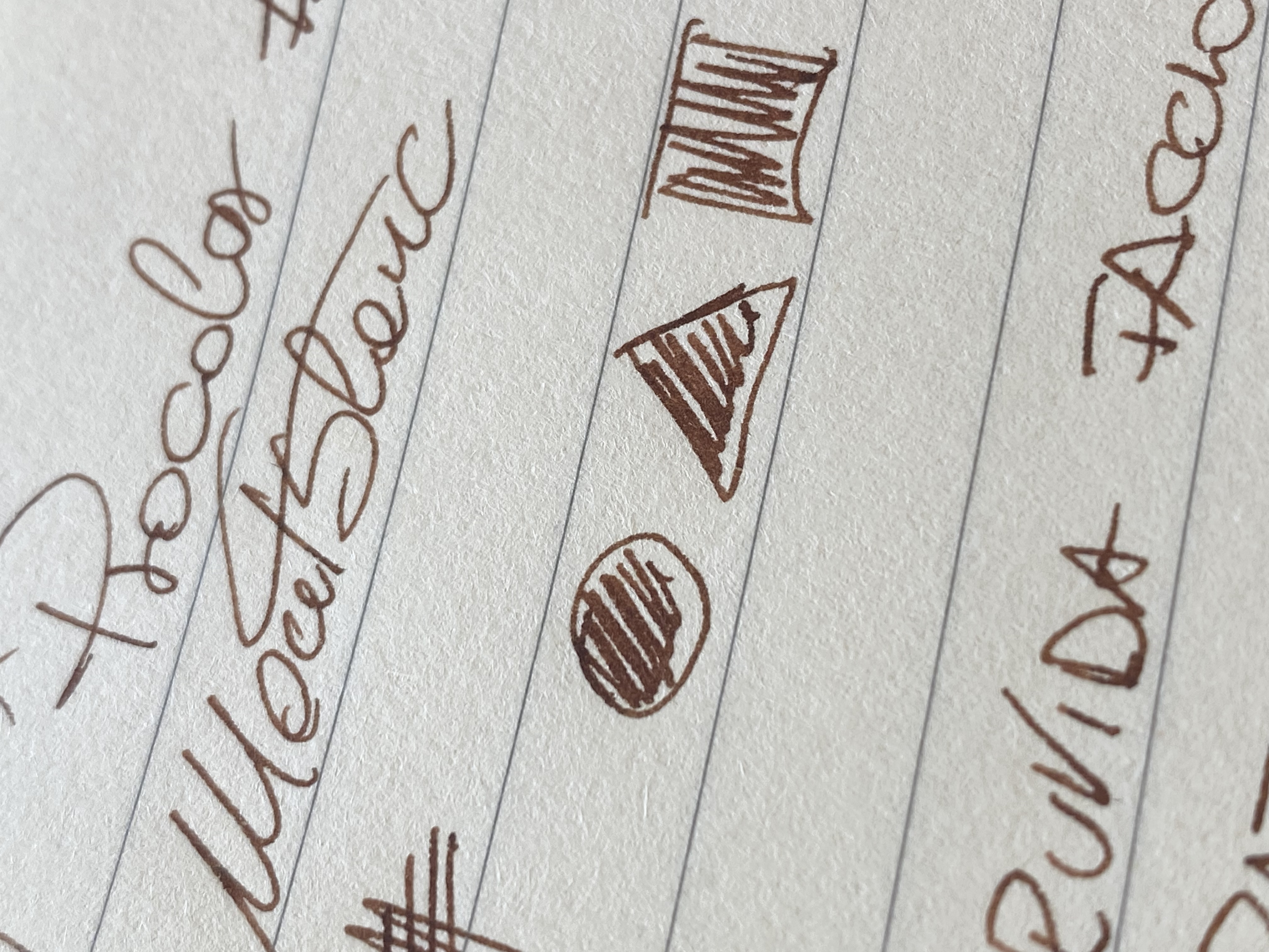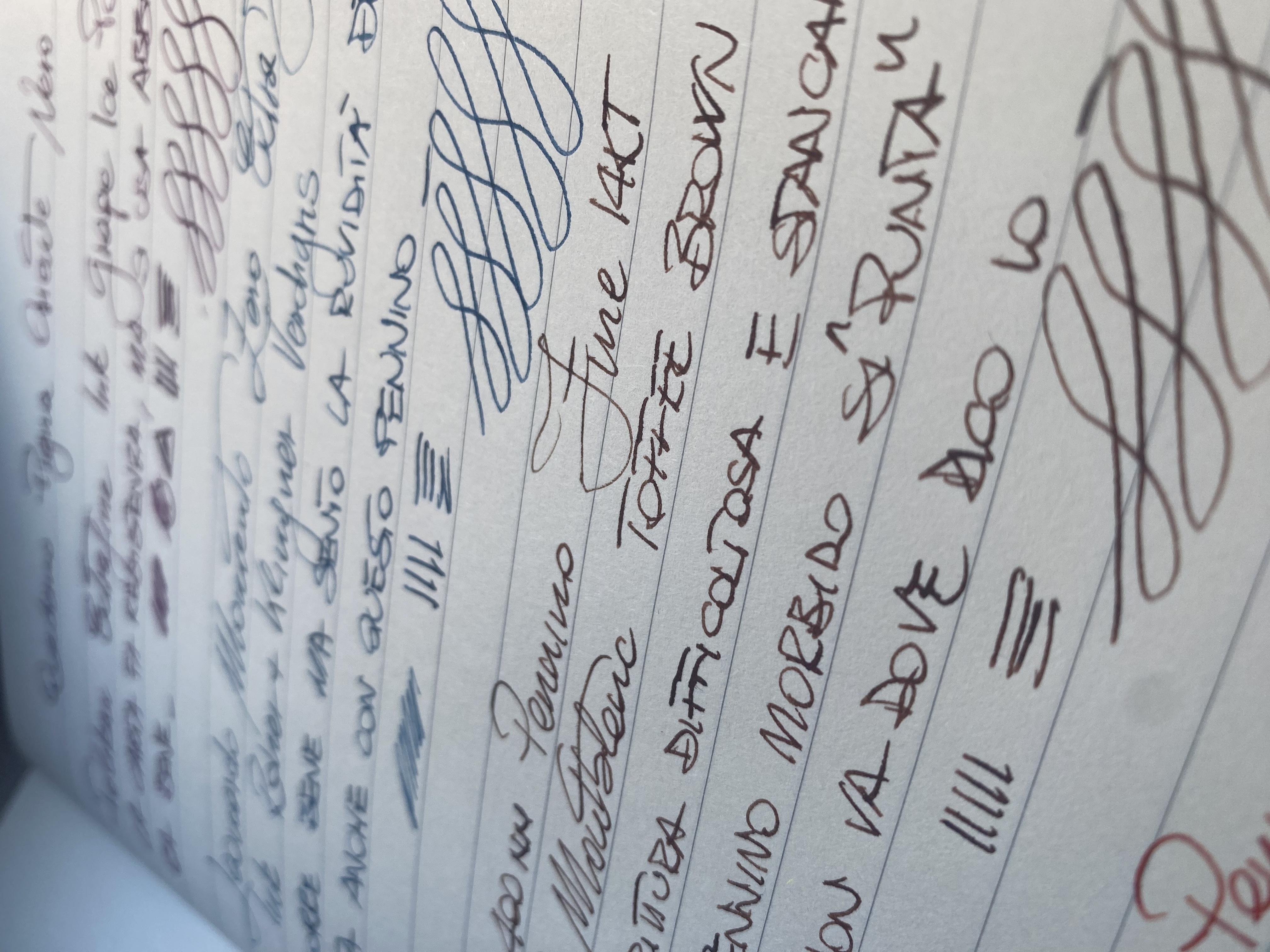 Rimane sempre una carta ‘ruvida’ con un feedback importante però, quello che era fastidioso con un fine giapponese diventa piacevole con un pennino vintage.