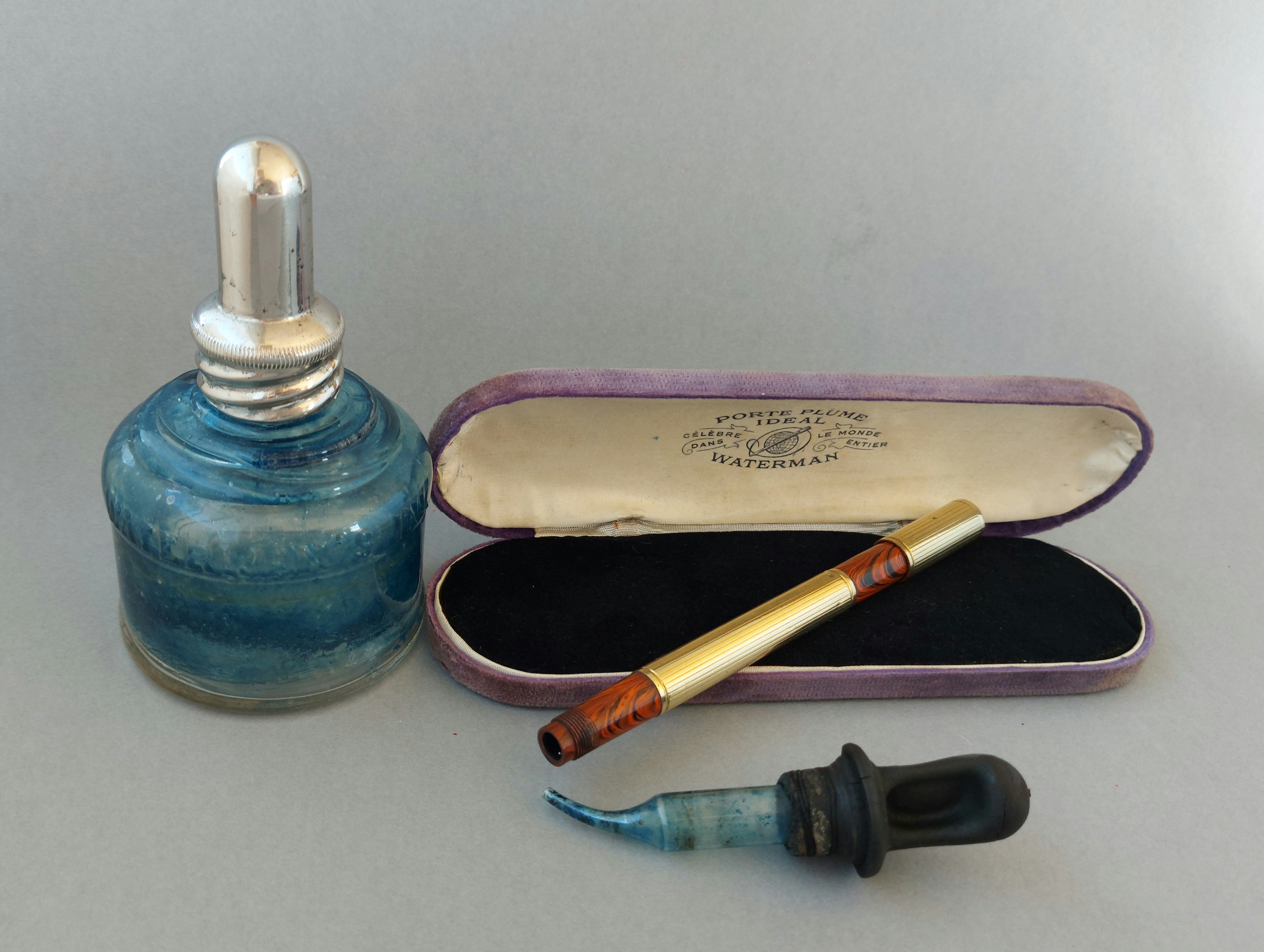 La situazione era stata complicata dalla Waterman stessa, che aveva avviato anzitempo la dismissione (inopinata, vista la loro grande bellezza ed eleganza) dei calamai su stelo a forma di “globo” (o “cardioide”), prodotti in cinque varianti successive a partire dal 1912, e destinati alle penne con caricamento “automatico” (ossia, dopo il 1915 in casa Waterman esclusivamente alle lever filler), rimanendo così già all’inizio degli anni Trenta senza una vera alternativa commerciale alla ormai “sorpassata” impostazione cilindrica.
