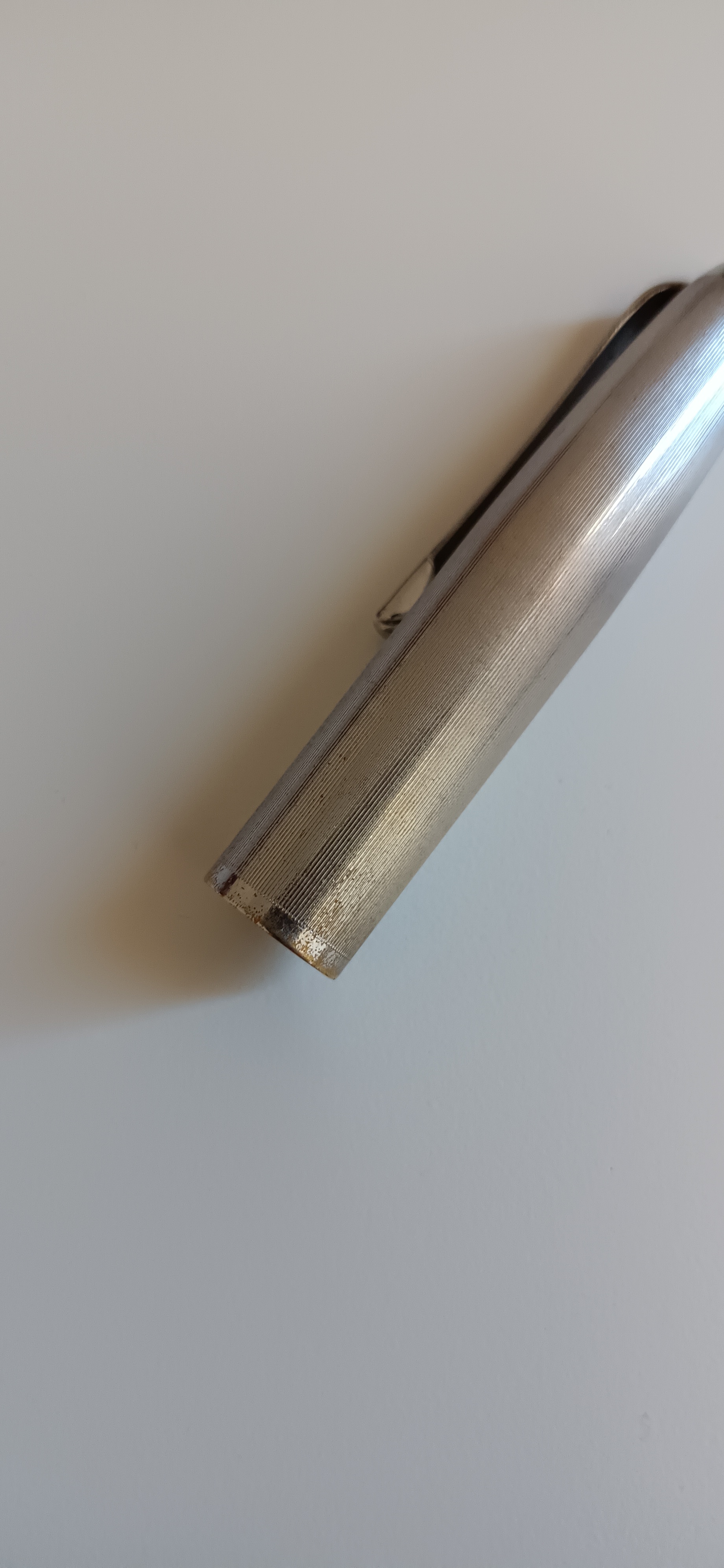 Buongiorno a tutti. Mi affido all'esperienza del forum per un piccolo problema:qualche mese fa ho comprato un'Aurora 88 modello "Nizzoli", proprio il primo modello, e ho però notato che se la lascio carica e non la utilizzo per circa 24 ore trovo il pennino completamente secco e ho bisogno di dare due colpi di pistone per far arrivare nuovamente l'inchiostro in punta. Potrebbe essere un problema di cappuccio? A me sembra che chiuda alla perfezione senza "gioco", ma non so come verificare che passi aria. Inoltre, il cappuccio, in metallo cromato, presenta macchie e all'interno ha tracce di ruggine: questo potrebbe influire? Avete consigli per riportarlo all'antico splendore?