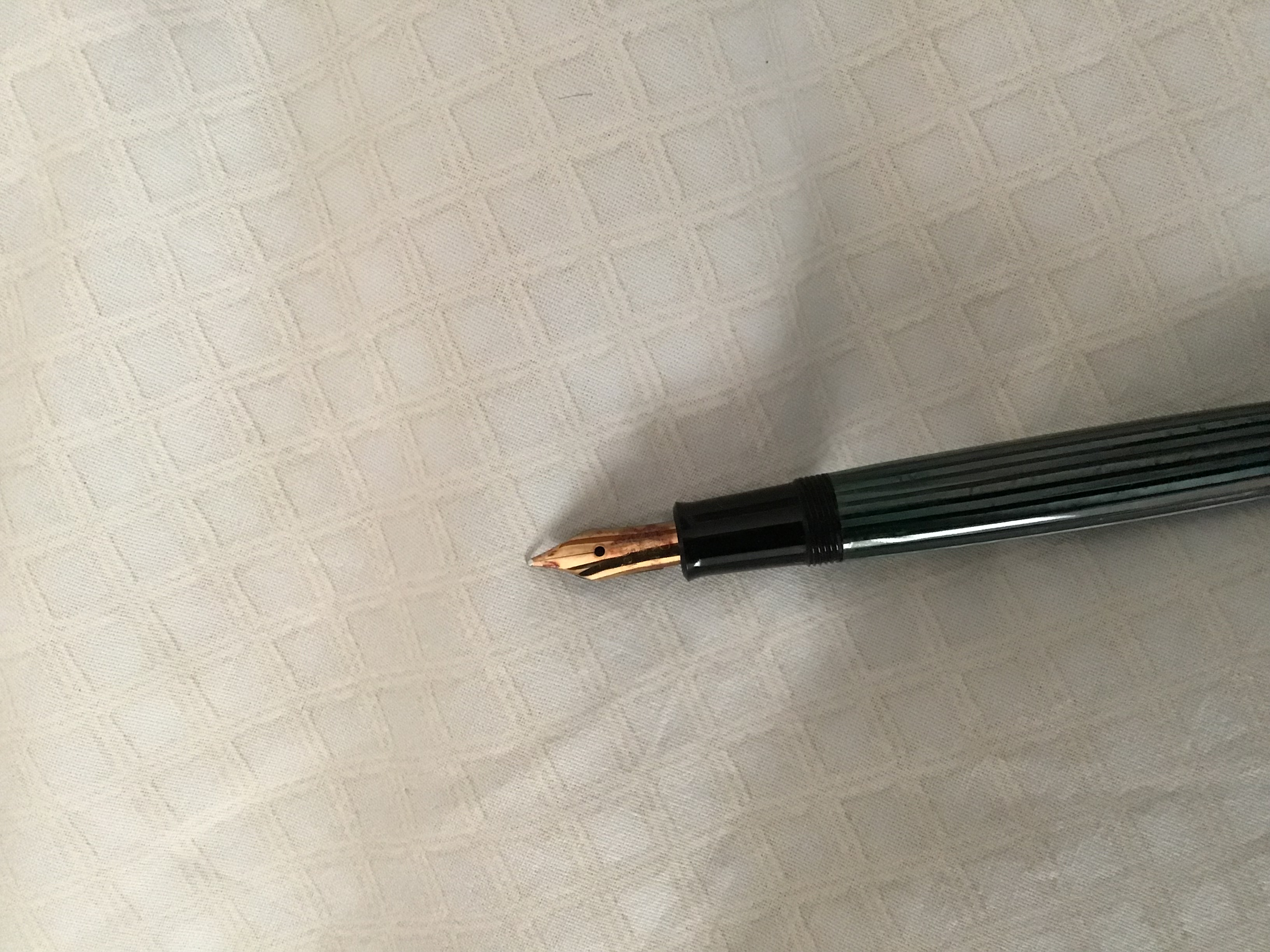 Il pennino in oro di questa mia vecchia signora Pelikan 140 sta assumendo un tono di colore violaceo.