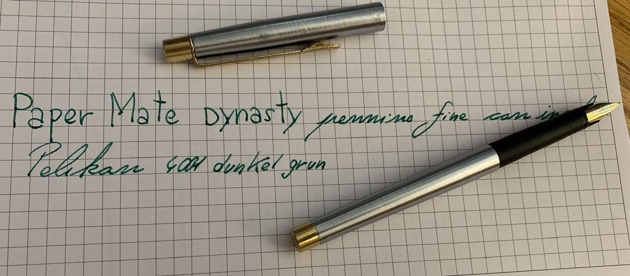 Paper Mate Dynasty con pennino fine e inchiostro Pelikan 4001 dunkel grün .