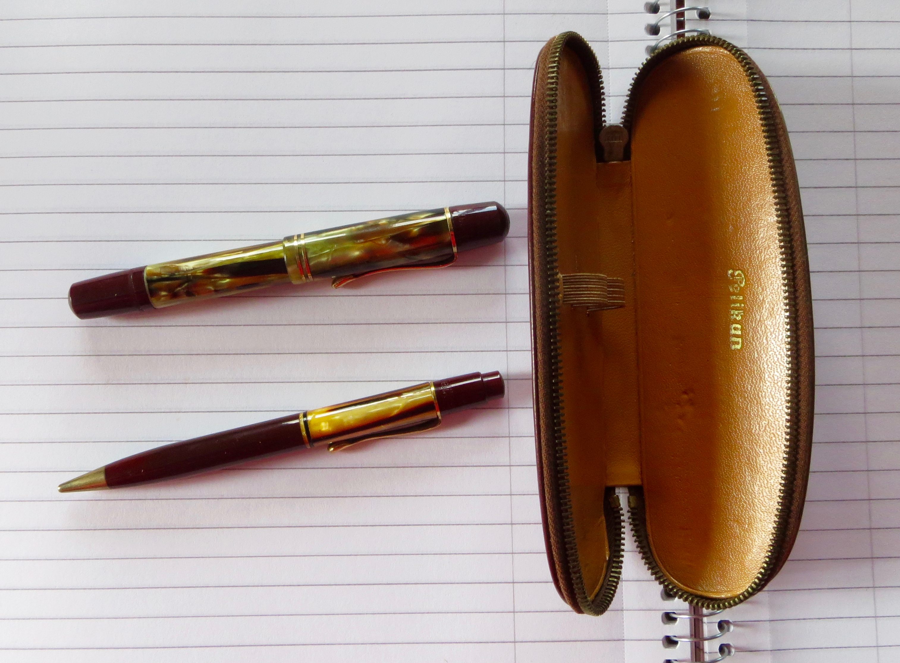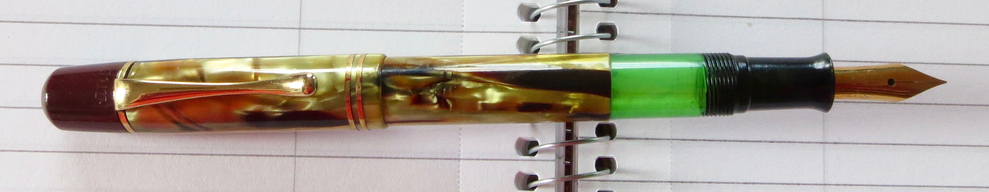La penna, per citare Dittmer e Lehmann, tecnicamente ha un "neuer kolben mit farbloser dichtung fest montiert auf der kolbenstange", quindi databile nei primi anni '50 (non vi è concordanza tra le fonti e non vi sono cataloghi per una datazione più precisa): un portapenne degli anni '30 forse non è l'ideale. Comunque colpa mia che non ho riportato questo dato, inducendo forse ad una datazione non corretta.