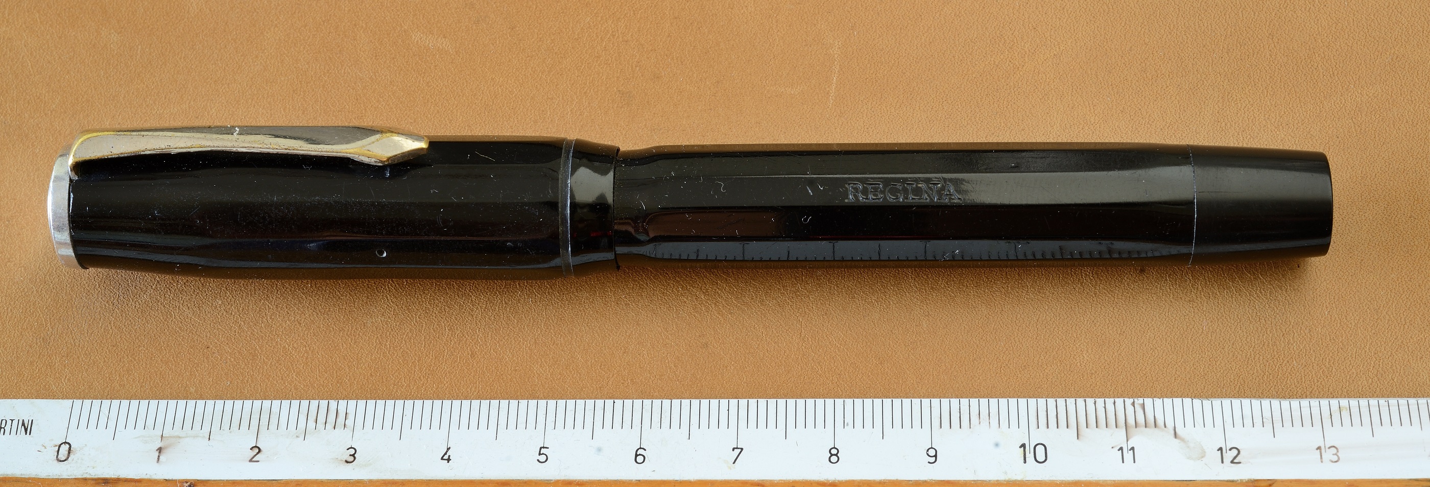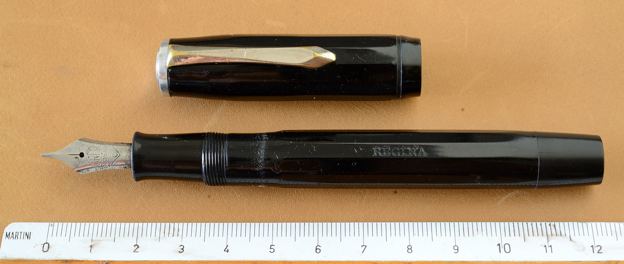Quest'altra invece è marcata Regina, credo in celluloide nera faccettata (18), pennino in