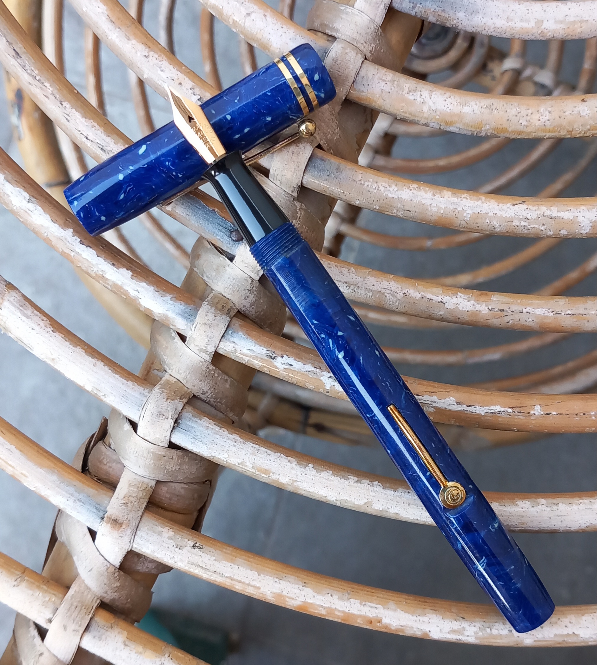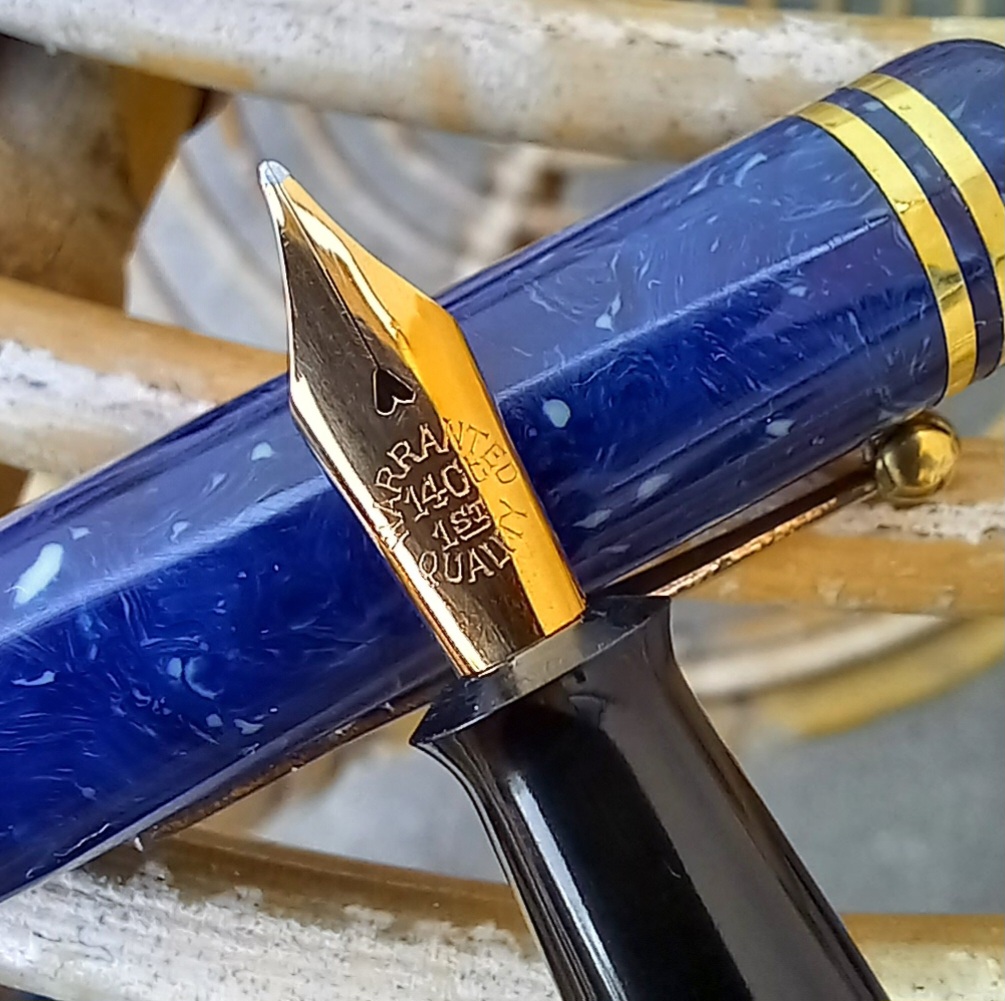 Ecco il pennino tipico di Lang utilizzato anche per le stilografiche Summit fino al 1935: Equipaggia, in questo caso, una splendida Summit H. 100 in blu lapislazzuli ma era lo standard per tutte le stilografiche di Lang, d'ogni marchio.